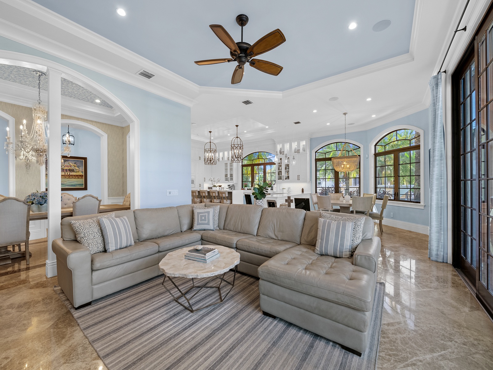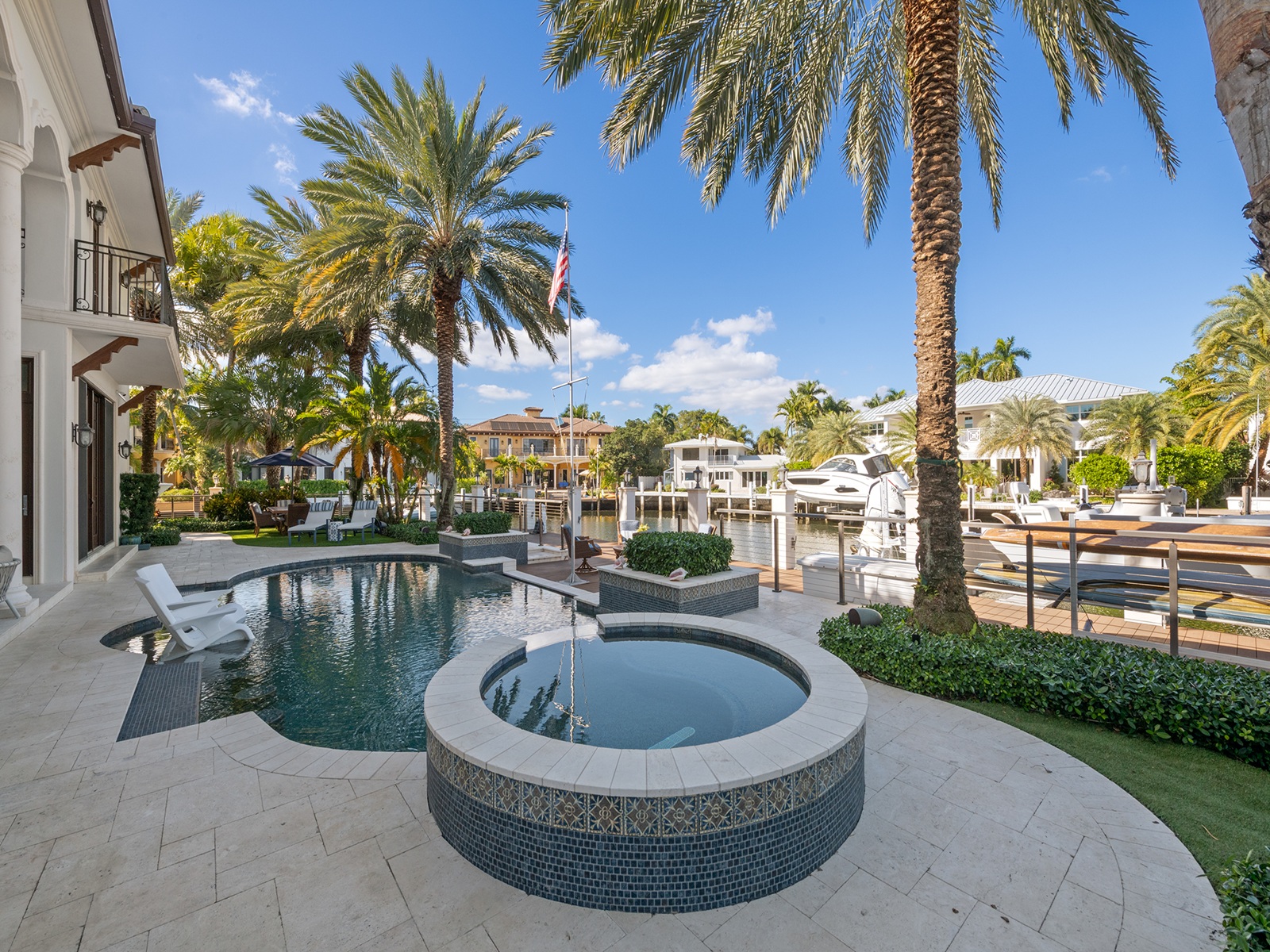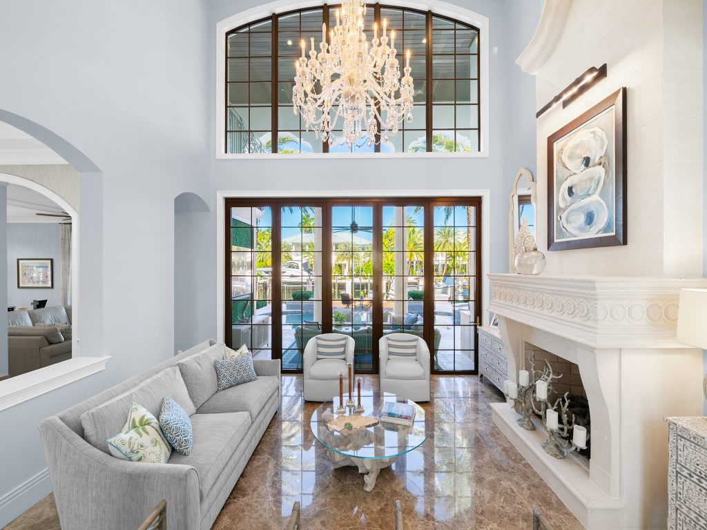 Price to Sell, Owner Relocating!Exquisite Gated Custom Built Home in Lighthouse Point, 6,786 SqFt, 5 Bedrooms, 5 1/2 Baths with a 3 Car Garage and Lift to accommodate 2 Vehicles in One Space. 220′ of Deep Water with Large Turning Basin and 10 Min to the Hillsboro Inlet Makes Perfect to Enjoy Your Large Vessel and the opportunity to purchase the Azimut 70 SeaJet Yacht. 2 Jet skis and Double Float Lift Comes With The House. Design Finishes by Lighthouse Interiors Include Marble and Porcelain Wood Plank Flooring, Custom Artisan Tile Work, Phillip Jefferies Specialty Wall coverings, Visual Comfort Light Fixtures, Ralph Lauren Chandeliers, Extensive Specialty Millwork, Mahogany Interior Doors and Intricate Custom Metalwork. Living Room features 16x10ft Euro Wall Accordion Glass Folding Door.