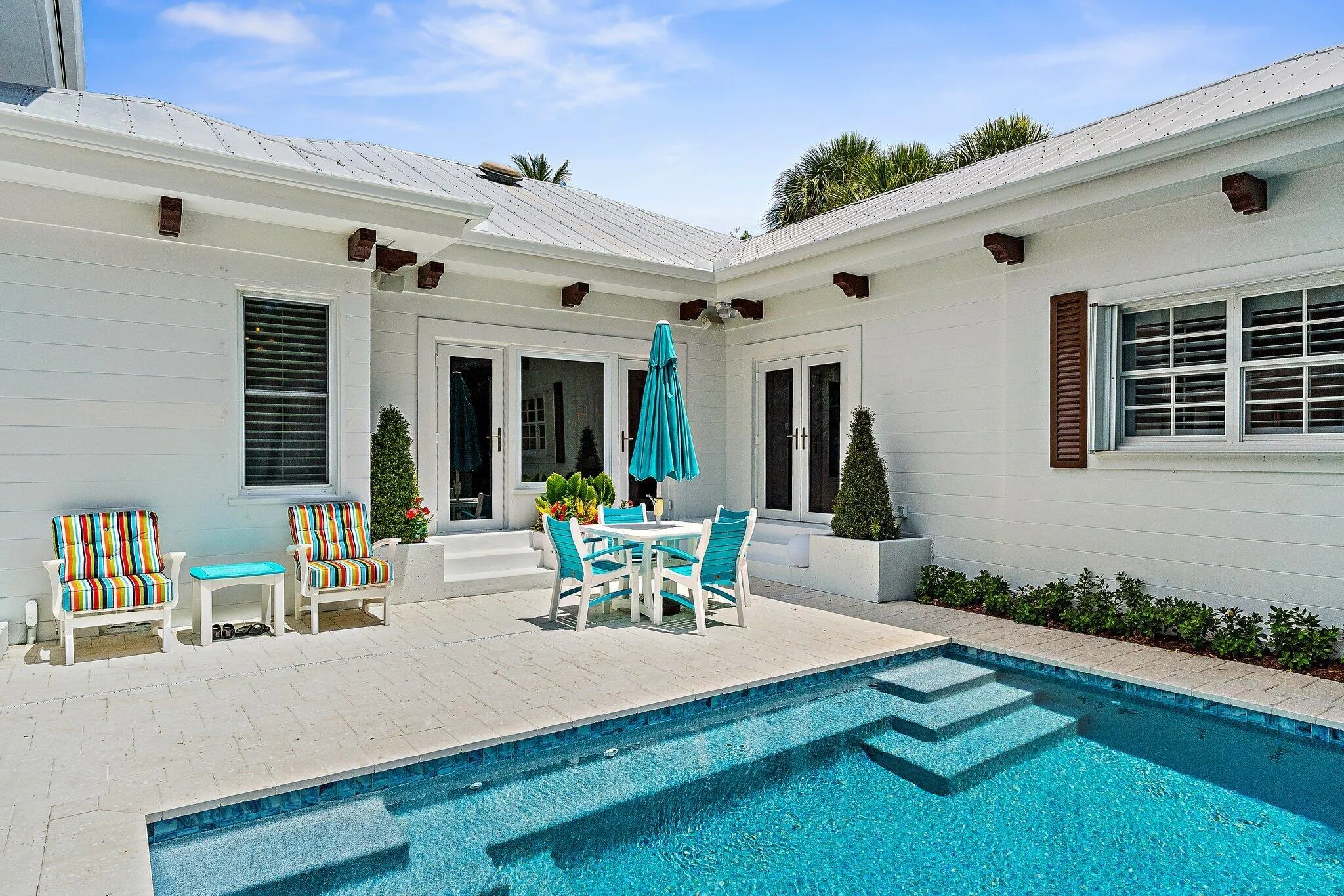 A Rare Gem in Historic El Cid – Steps from the IntracoastalNestled in the heart of the prestigious El Cid neighborhood–just four homes from the shimmering Intracoastal Waterway–this extraordinary estate offers the perfect blend of historic charm and modern luxury. As downtown West Palm Beach transforms, opportunities to own a refined residence in this iconic district are increasingly rare.Exuding Key West elegance with timeless architectural flair, this meticulously maintained compound boasts lush, tropical landscaping, a newly designed modern pool, and a sleek standing seam metal roof. The main residence showcases an expansive first-floor primary suite with custom-built closets and an opulent Saturnia marble