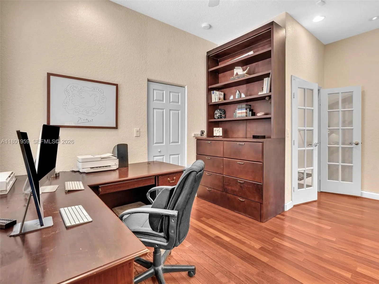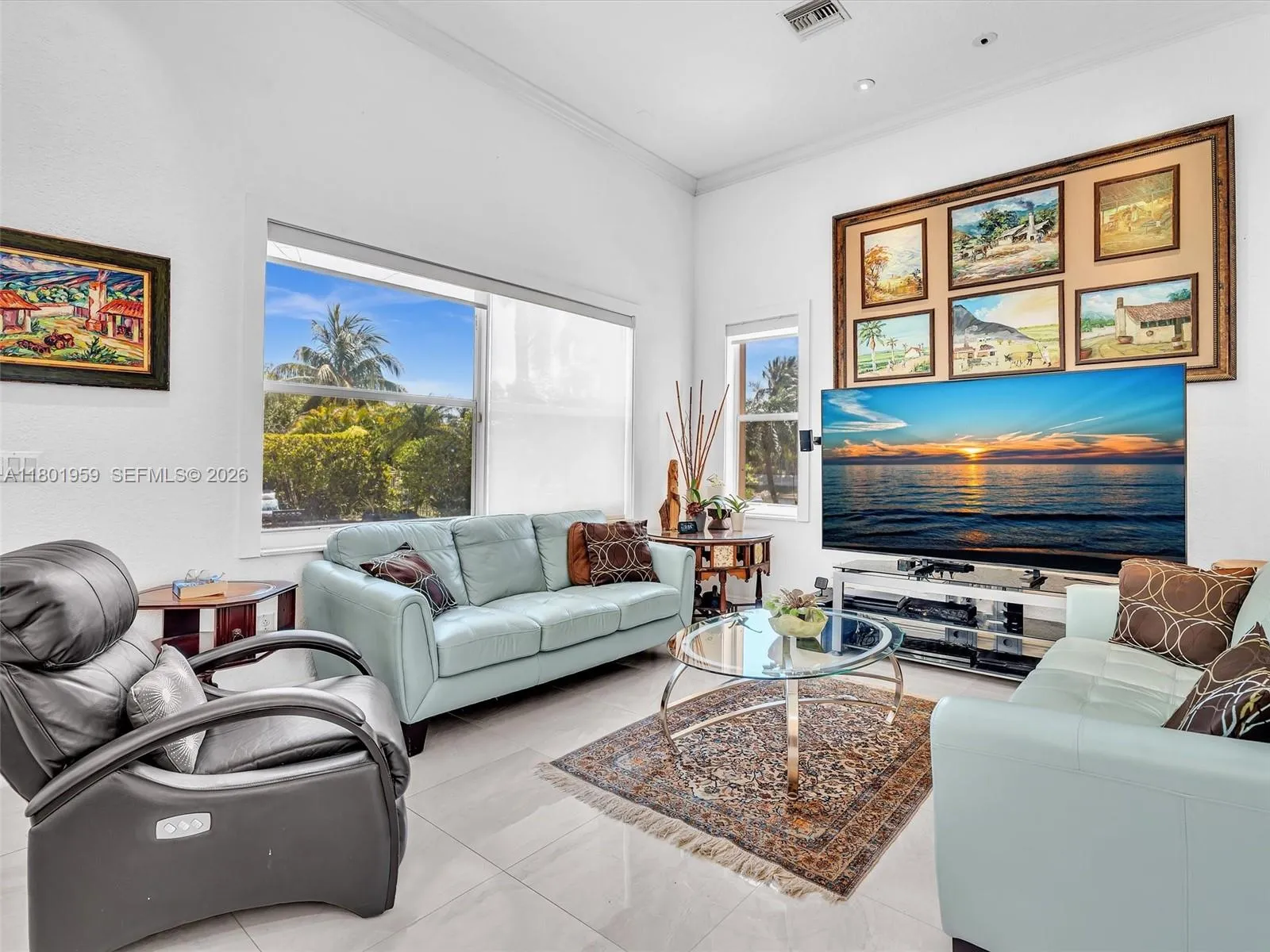 Bright and elegant 4-bedroom, 2.5-bath lakefront home located in the gated community of Sunset Isles at Sunset Lakes. Features an open floor plan with expansive windows and porcelain tile throughout. Updated kitchen with white custom cabinets, pull-out pantry drawers, granite countertops, mirrored backsplash, and breakfast nook with built-in seating and storage. Enjoy outdoor living with a private pool and lush backyard with fruit trees. Fourth bedroom currently used as an office. Original floor plan modified to expand social areas. All sliding doors are impact. Community offers resort-style amenities including clubhouse, fitness center, tennis and basketball courts. HOA includes cable, internet, and alarm services.