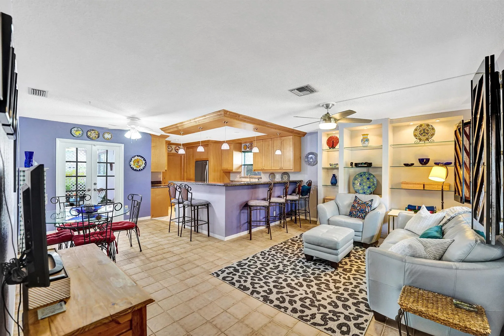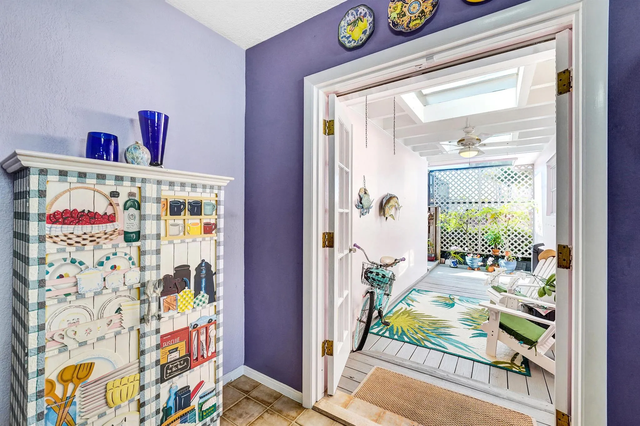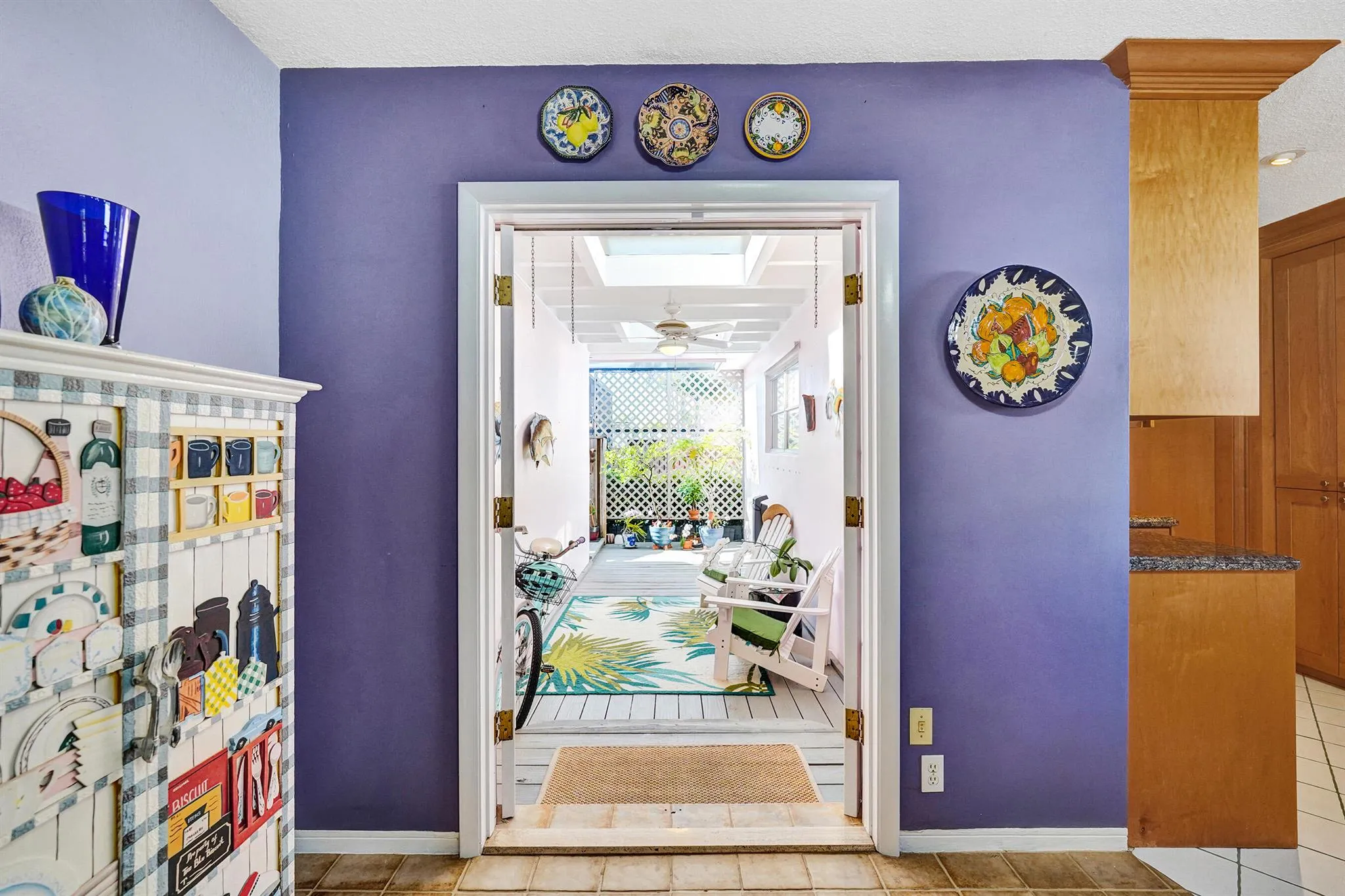 Ultimate location highly desirable Hollywood Lakes east of US 1, near Intracoastal, new Hollywood Beach Golf Course underway, & across from Holland Park! This meticulous 2Bed/2Bath home (built as 3 now styled as 2 bed easily convert) is great for entertaining with an open kitchen, stainless steel appliances, granite countertops, counter-top dining, & custom cabinetry. Washer & dryer. French doors off the dining & living area open to expansive wood deck with skylight, dome screen enclosure, & is completely fenced ideal for outdoor living. Master bedroom is spacious with ensuite bath & east sunlight. Second bedroom has built-in feature ideal for in-house office. Baths feature original mosaic tiles with a modern deco bath look. Lush landscaping. 1-car garageSold as is.