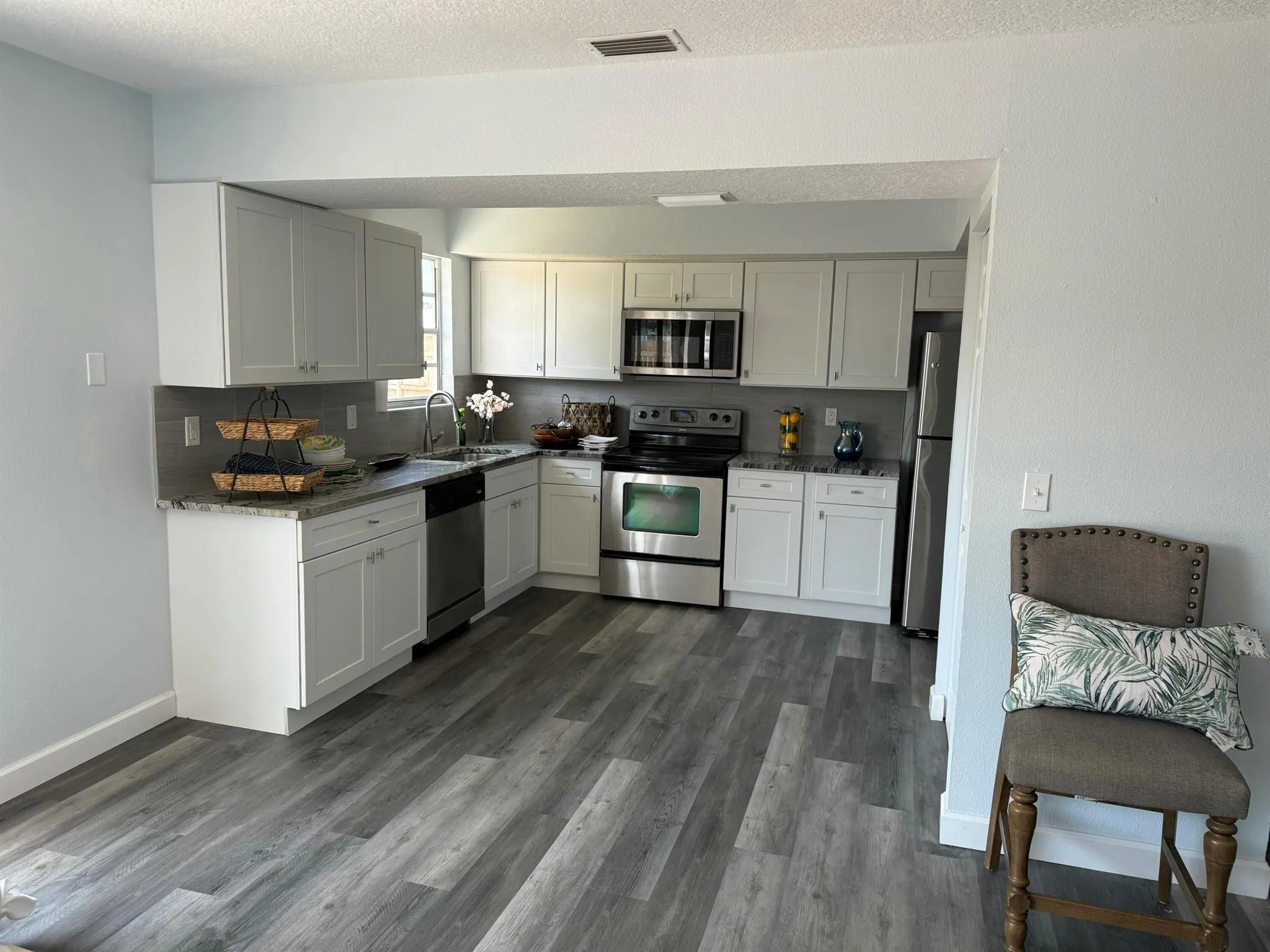 FIRST TIME HOME BUYER or GREAT RENTAL INVESTMENT POTENTIAL. This newly remodeled home is located on a large corner lot in the desirable heart of Port St Lucie. This 3 bedroom 2 bath home offers new Luxury vinyl plank flooring, stainless steel appliances, granite countertops, kitchen backsplash, new bathroom vanities, and a large wooden fenced in back yard. Bring your trucks, boats or RV-NO HOA FEES! Conveniently located & close to beaches, hospitals, schools, restaurants, etc.The Hot Water Heater replaced in Nov. 2024, roof 2004.