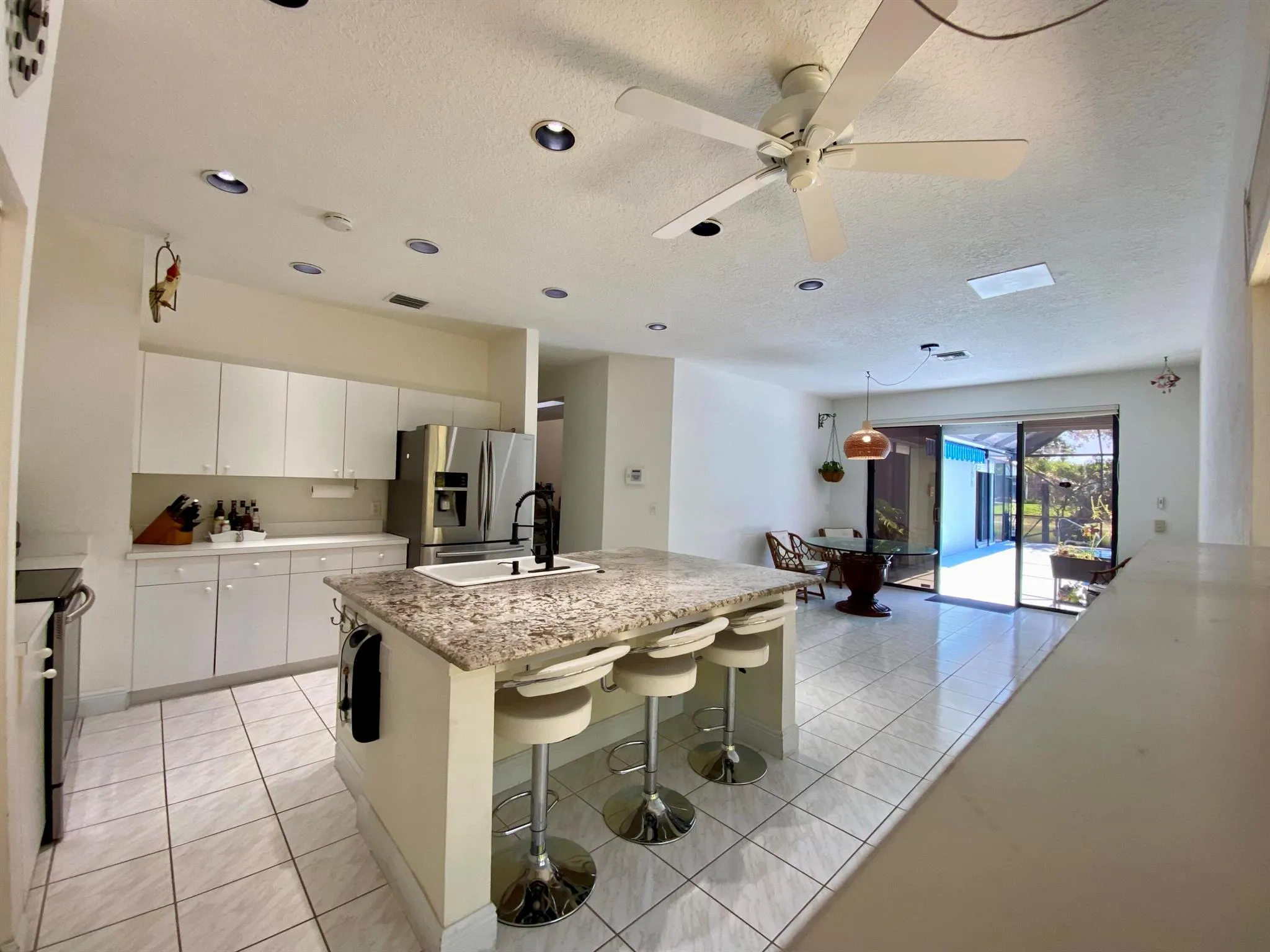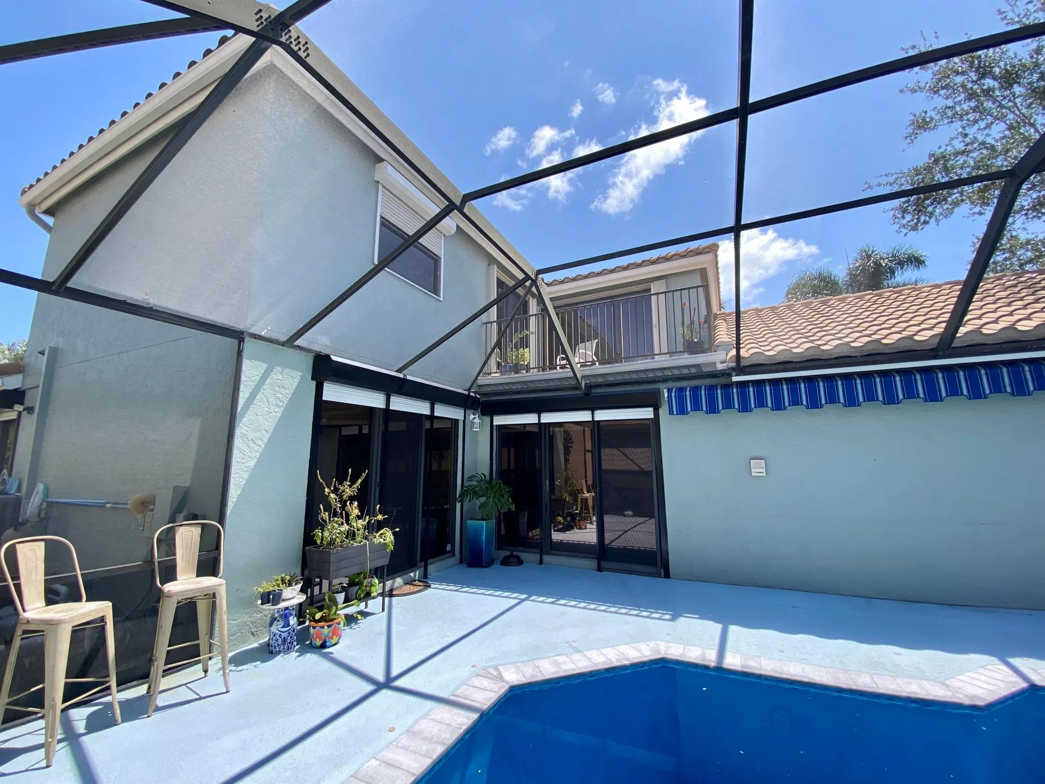 Lsting below value!.The home has recently been renewed with exterior paint, beautiful tiled roof 2019 and gorgeous new pavered elongated drive!Electric shutters make storm preparation a breeze.Upon entering this home you are met with soaring ceilings and an open living feel! The Owner’s Suite is found on the main floor. Upstairs you will find a charming open walkway overlooking living areas below. 2bds 1bath with a shared cozy loft and outside balcony are found on second floor.An exceptional opportunity to make your dream kitchen awaits you, as this spacious area has an abundance of natural lighting and potential ! Look outside from all areas and view a newly resurfaced pool over looking lake and fountain. enjoy your lazy summer days within a screened enclosed Patio setting.