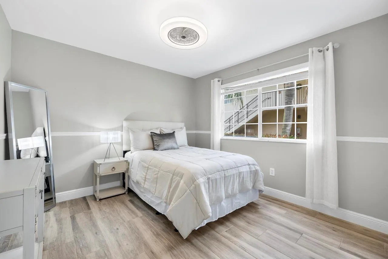 First Floor 4Bed/2Bath with attached GARAGE! 2024 Updated, Modern Kitchen with New Quartz Countertops, New Cabinets, New Sink, New Faucet, New Range, New Dishwasher, and New Disposal! Newer Refrigerator, Guest Shower, and Washer & Dryer! Newer Bathroom Vanities & Light Fixtures! New Water Heater! Tiled Flooring throughout and Porcelain Floor Tiles in Guest Bedrooms! Remote-controlled Light Fixtures/Fans! Walk-in Closets with Built-in Shelving & Drawers! Corner-unit with Tons of Natural Light! Painted Garage with additional exterior Parking Space! Gated Community! Clubhouse w/Fitness Center! Playgrounds, Tennis Courts, and Two Pools! Walking Distance to the new Restaurant Plaza and just 25 minutes to the Beach!