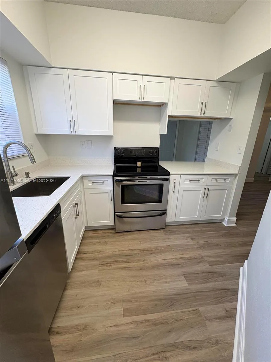 For RENT as well! FULLY RENOVATED w/ all high end quality materials and finishes. A MUST SEE! Great opportunity to live in a corner first floor apartment in the desirable area at Reflections of Pembroke Pines. This is 2/2 unit, completely remodeled with LVP flooring, wood kitchen cabinetry and quartz counter tops; HOA includes water, pool and trash removal. Unit has 2 legal parking spots with plenty of visitors/guest parking spots nearby. The community boasts with amenities such as a swimming pools, tennis, racquetball and basketball courts with well-maintained common areas. This community is surrounded by A+ schools and is conveniently located near great shopping, dining, and entertainment for all.