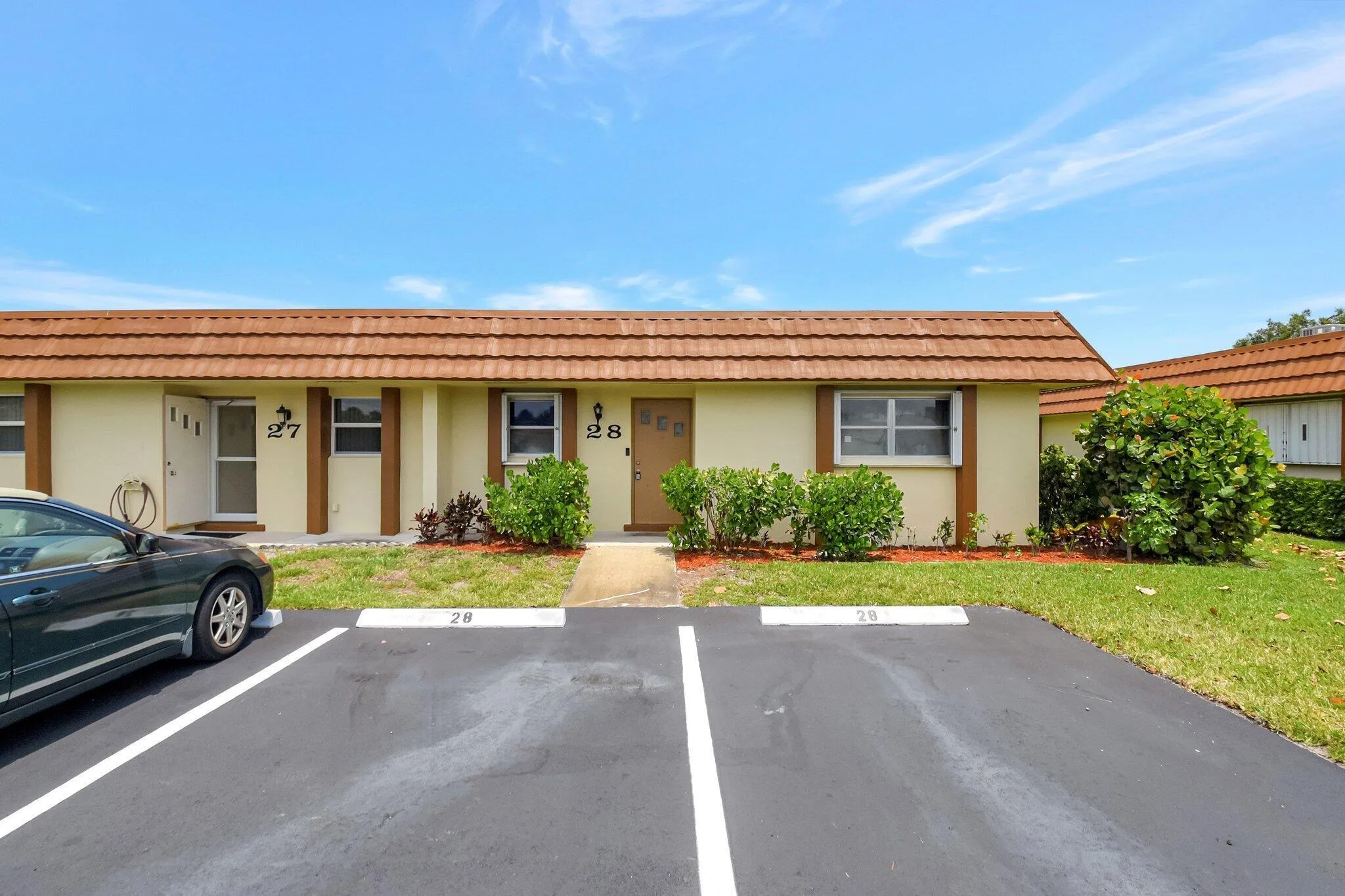 Fernley III is a 55+ no-pet community featuring a clubhouse, pool, and tennis with a 15-20 minute drive to the beach and surrounded by major shopping plazas.. This corner unit villa offers a master bedroom with walk-in closet and guest bedroom with floor to ceiling closets. The kitchen has additional counter space and cabinets for extra storage. The guest bathroom has been partially updated with new vanity, toilet, & sliding glass door with both bedrooms has updated tile. AC from 2011. Master bathroom has updated vanity & toilet with tub and sliding shower door. The patio area is enclosed with plastic windows and screens for that Florida outdoor experience. Washer/dryer are included in the sale and located in the utility room with the water heater 2005.