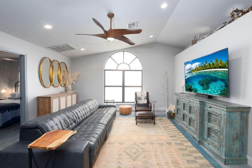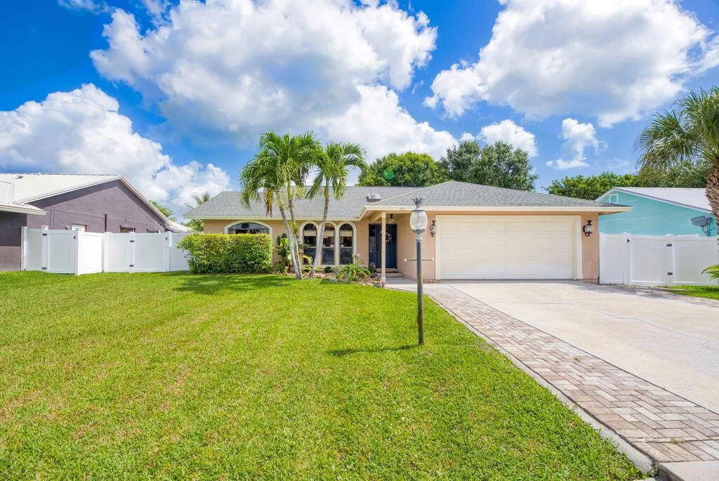 Welcome to this 3-bedroom, 2-bath home located in the desirable Jensen Beach Park Estates. Enjoy your own resort like swimming pool and spa. .ACTUAL SQ FT IS 1900 .This home features upgraded ceiling fans, updated fixtures, and custom-built shelving throughout. Enjoy this private fenced yard in a quiet and beautiful neighborhood. Located just minutes from the beach it offers the perfect blend of comfort and coastal living. 2025 AC, New Fence, Pool Heater, Refrigerator in garage conveys SELLER IS MOTIVATED