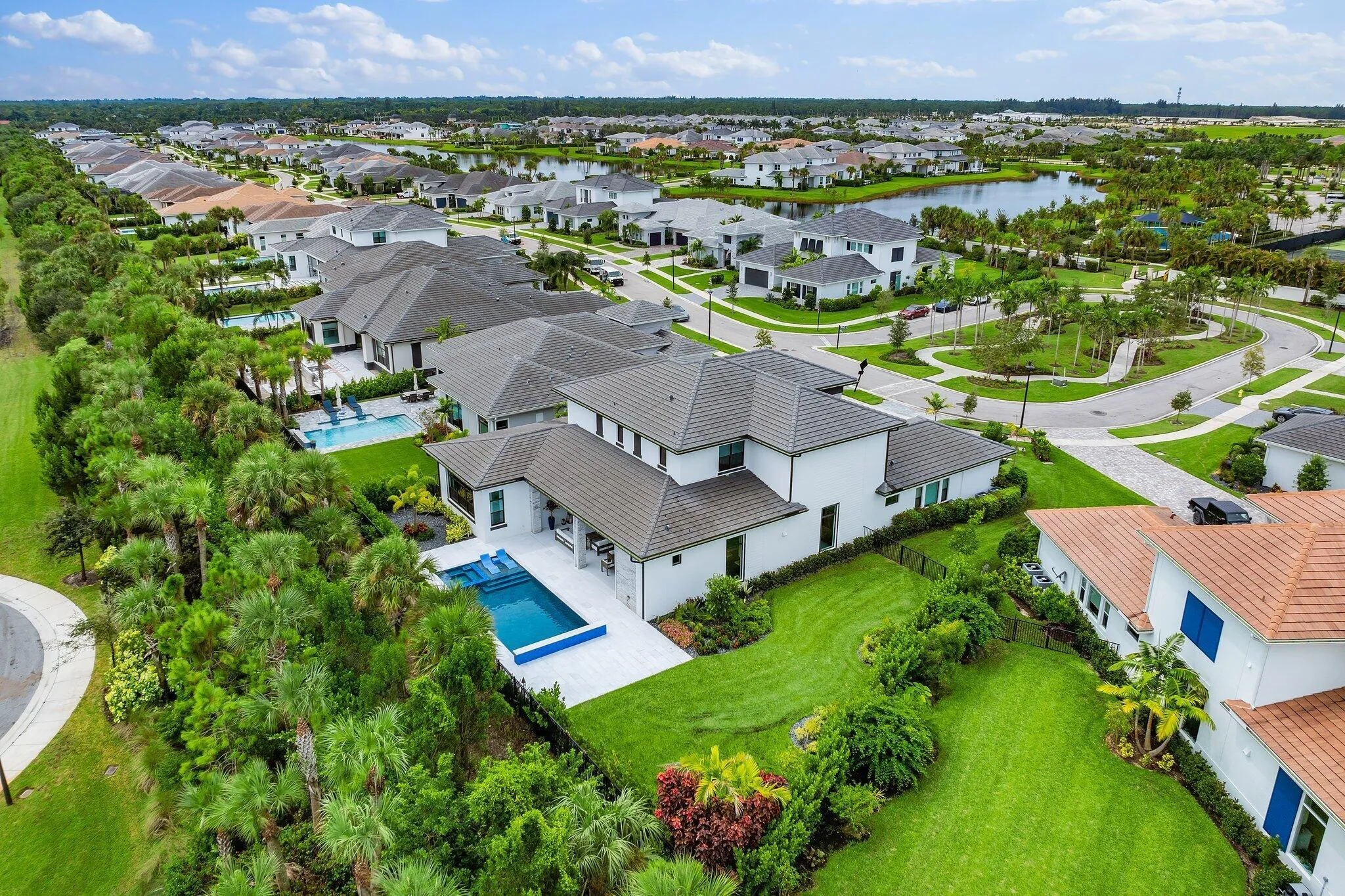 Welcome to Coral Isles, a gated private enclave of only 107 homes within the luxury community of Avenir in Palm Beach Gardens. This exquisite home is located on over 1/3 acre in a sought-after location within the community, offering an oversized yard and a one of-a-kind custom pool and outdoor entertaining area. This prime homesite is adjacent to the Coral Isles lovely neighborhood green space and within walking distance to the resort-style Avenir clubhouse and amenity center. This two-story Dominica floor plan boasts 5 bedrooms, 6.5 baths PLUS a loft, flex/club room & 3-car garage. Each guest bedroom boasts an ensuite bath & walk-in closet! This 2022 built home offers you an immaculate like-new home with all the finishing touches a new construction home requires–already curated and