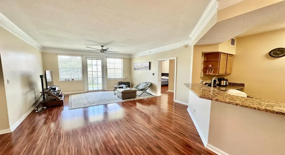 This 2 bedroom 2 bath condo is meticulously maintained and shows well. Appliances under 3 years old and washer/dryer was just replaced in June 2025. The condo has spacious bedrooms and baths, wood floors, crown moulding and a covered balcony with pool and garden views. This is a gated and peaceful community with mostly professional residents. Convenient to shopping and major highways. Great landlord as well!