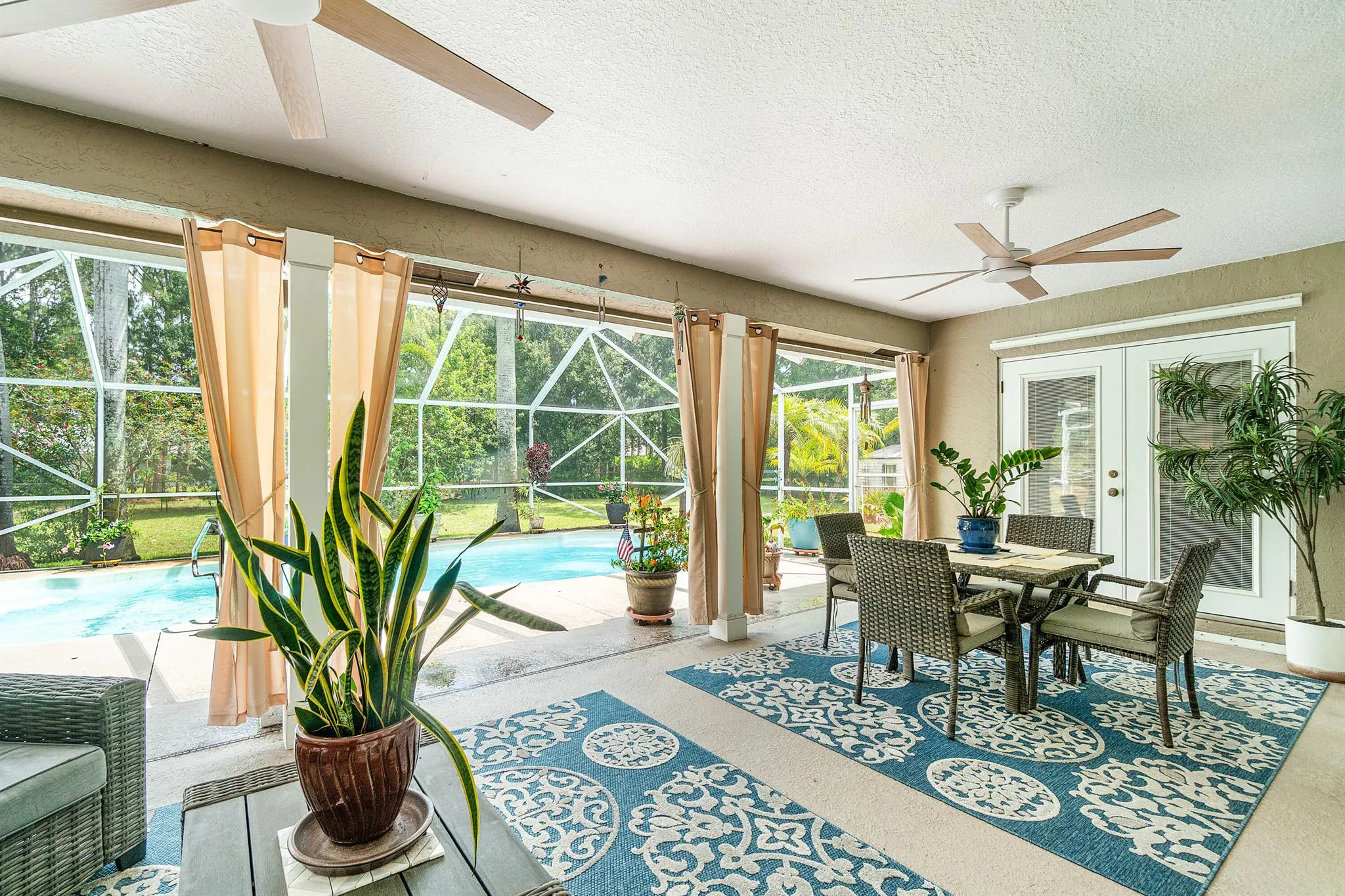 PRICE TO REFLECT NEW ROOF BEING INSTALLED on main house& building approx. 30-45 days Welcome to this spacious and well-maintained 4-bedroom, 2-bathroom home with a 2-car garage, PLUS A 1 bedroom, 1 bath GUEST HOUSE, and a screened- in pool, perfect for Florida living! The kitchen boasts 42-inch cabinets with granite countertops, offering plenty of storage. The master suite features a recently renovated bathroom. French doors from living room provides seamless access to the outdoor space, ideal for entertaining. This home also includes a detached 40×30 garage with 13 ft ceilings and 12×12 overhead door, perfect for storing an RV, boat or using as a workshop. Attached is a 561 SF efficiency suite with private bathroom. Great for guests/ or home office all this situated on over 1 ac