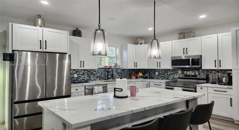 This immaculate, contemporary home located in the desirable Golden Gate Estates offers modern living on a spacious 2.73-acre lot. Built in 2024 and gently lived in for just one year, the property features 3 bedrooms, a versatile den, and 2 full bathrooms laid out in an open-concept design that provides both comfort and functionality. The quartz kitchen countertops, impact-resistant windows and doors, and elegant finishes throughout add a touch of sophistication. With ample outdoor space, this property offers the perfect opportunity to build a guest house, workshop, or recreational area, all without HOA restrictions.