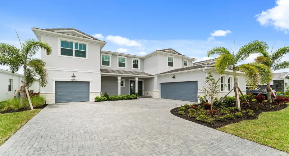 The 3,466 square foot Palacio floorplan offers versatile, thoughtfully designed space in a pleasant configuration of shared and private living areas. The first floor has its own additional bedroom with a full bath and dual sinks in addition to a flex room and large, combined Great Room, dining room and kitchen with breakfast bar. Upstairs, a large loft makes for excellent gathering space. The large, private owner’s suite has two walk-in closets. Bedrooms 2 and 3 also have walk-in closets, and an adjacent full bath with dual sinks.