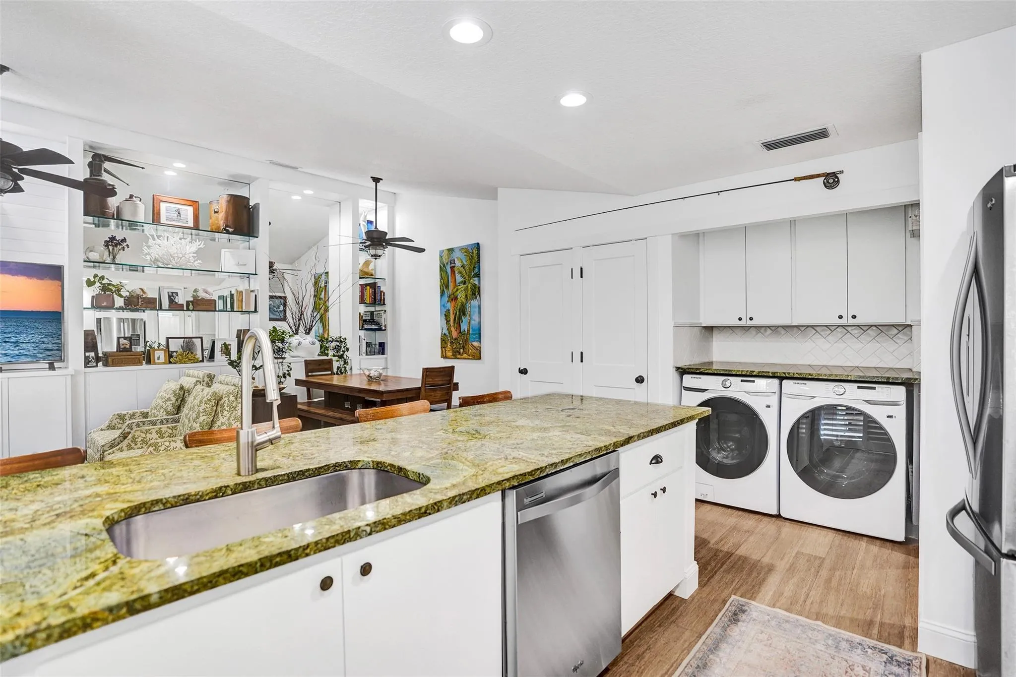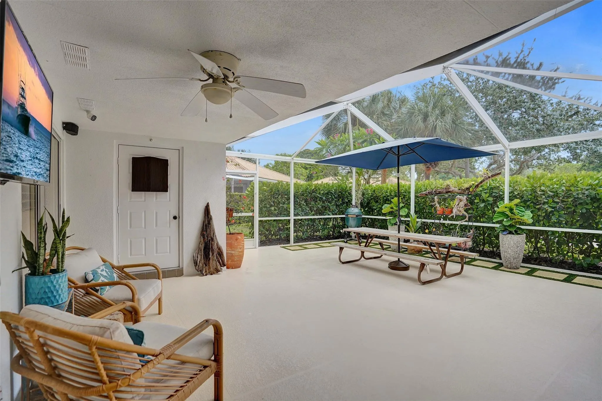 Welcome to this home with real hardwood floors, recessed LED lighting, raised panel doors, crown molding, custom built in entertainment center, and plantation shutters. The kitchen overlooks the living area and patio and offers quartzite countertops, brand new micro/air fryer/convection oven, double ovens, new front load full size washer and dryer, and 2 yrs new water heater. Split bedroom plan with guest access to 2nd bath from living area or 2nd bedroom. Updated master bath has new frameless glass shower enclosure. Extra storage closet in the patio and lots of attic storage room. Community offers temperature controlled pool and lots of green space and beautiful lake views. Pets Ok. Trucks OK, Kids OK. Very close to PGA Mall and all the restaurants & shopping around the area.