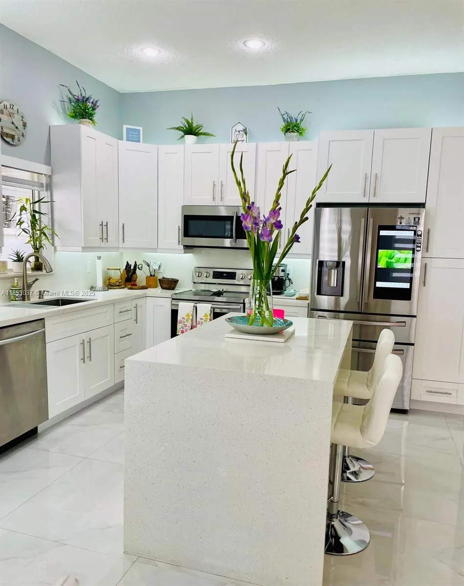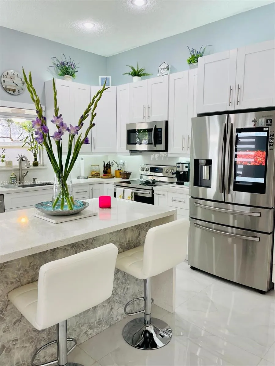 Beautifully Remodeled 3-bed, 2-bath home in the highly desirable Silver Lakes Community! This light & airy home features: Porcelain Tile & laminated Wood Floors in the bedrooms, amazing kitchen with wood cabinets, quartz counters, top of the line appliances including a smart refrigerator, pantry, center island with waterfall edge & lots of storage space, zebra window blinds, high impact windows & doors, spacious primary bedroom with walk-in closet, en-suite bathroom with dual sinks & shower, office/den area, NEW Roof 2024, A/C & Water Heater (2018), covered terrace with ceiling fans, outdoor kitchen area with refrigerator, storage shed & fenced backyard. The Silver Lakes amenities include a community park, pool, playground, walking trails, clubhouse, and security patrol. Great Location!