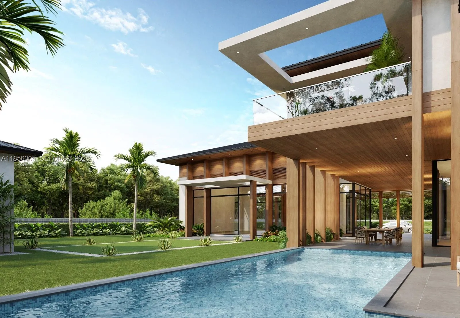 One-of-a-Kind Architectural Masterpiece – Designed by famed Affinity Architects, this 6BR, 6BA, 3HB estate is situated on over 2 acres of land offering refined living with exceptional design. The flexible layout allows for 7+ bedrooms. This rare and unforgettable Bali inspired architecture blends natural materials, open layouts, and intricate craftsmanship, focusing on nature through walled compounds of separate pavilions for different functions, creating indoor-outdoor living with abundant ventilation and connection to gardens overlooking a pool, shaded lounge, and spa. Amenities include: a wellness room with sauna, private movie theatre, 2 family rooms, staff quarters, mud room, and 2 laundry rooms. A 4-car garage plus guest parking ensures ample space. Every detail reflects quality craftsmanship, timeless style, and a seamless connection between indoor and outdoor living.