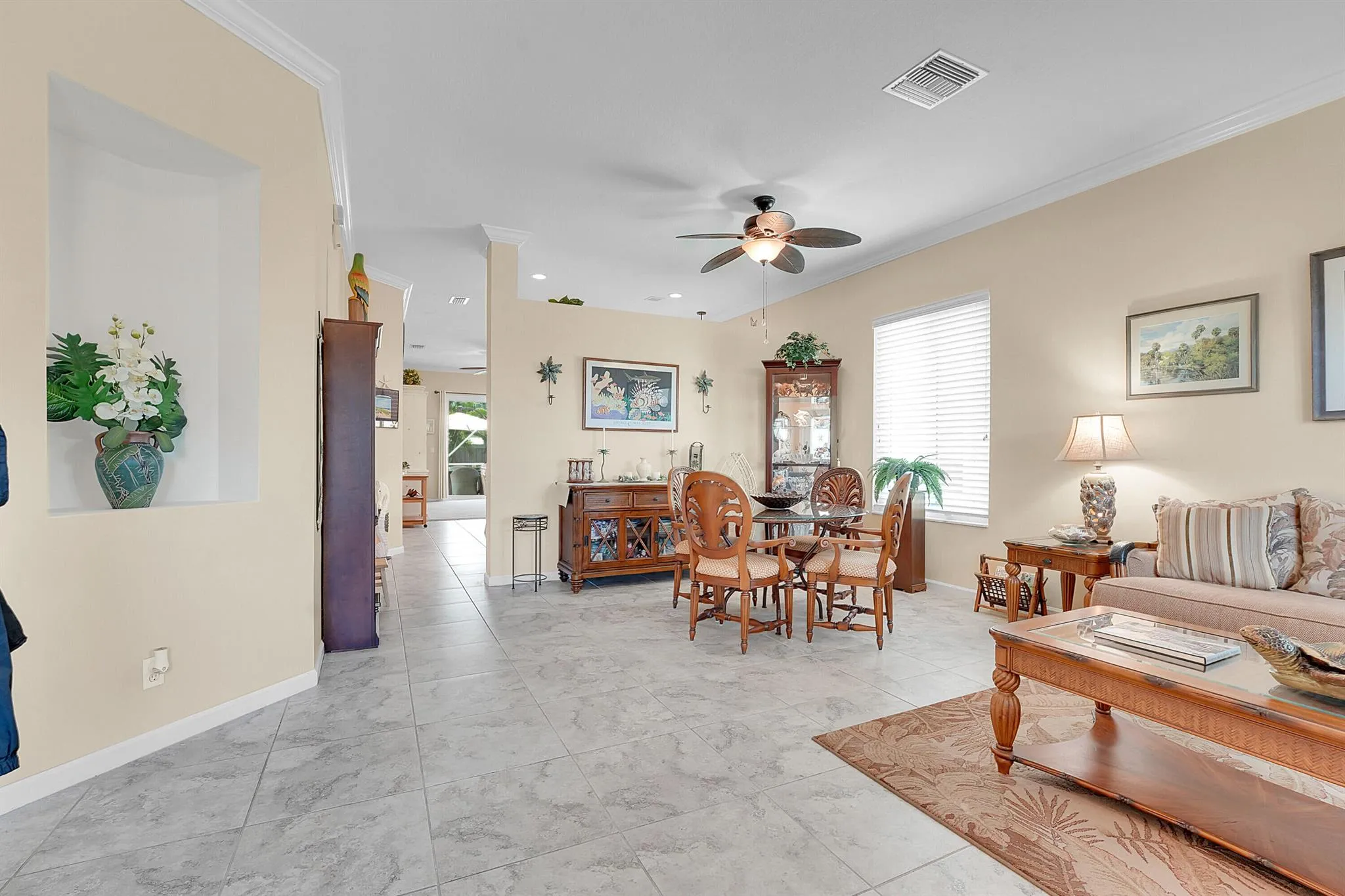 Welcome to Springtree! This beautifully updated 3-bedroom, 2-bathroom home offers comfort, style, and peace of mind with complete impact windows and doors and a new roof and gutters in 2019. Enjoy Florida living year-round in your covered lanai and screened-in gas heated pool, featuring a resurfaced pool and deck–perfect for entertaining or relaxing in privacy. The remodeled kitchen boasts a spacious granite island, granite countertops, and matching backsplash, complemented by a gas stove. A new gas water heater ensures efficiency, while landscape lighting and a full irrigation system keep the curb appeal pristine. The fully fenced backyard makes this a dream for pet lovers or anyone who values a private outdoor space. Located in the desirable Springtree community, this move-in-ready