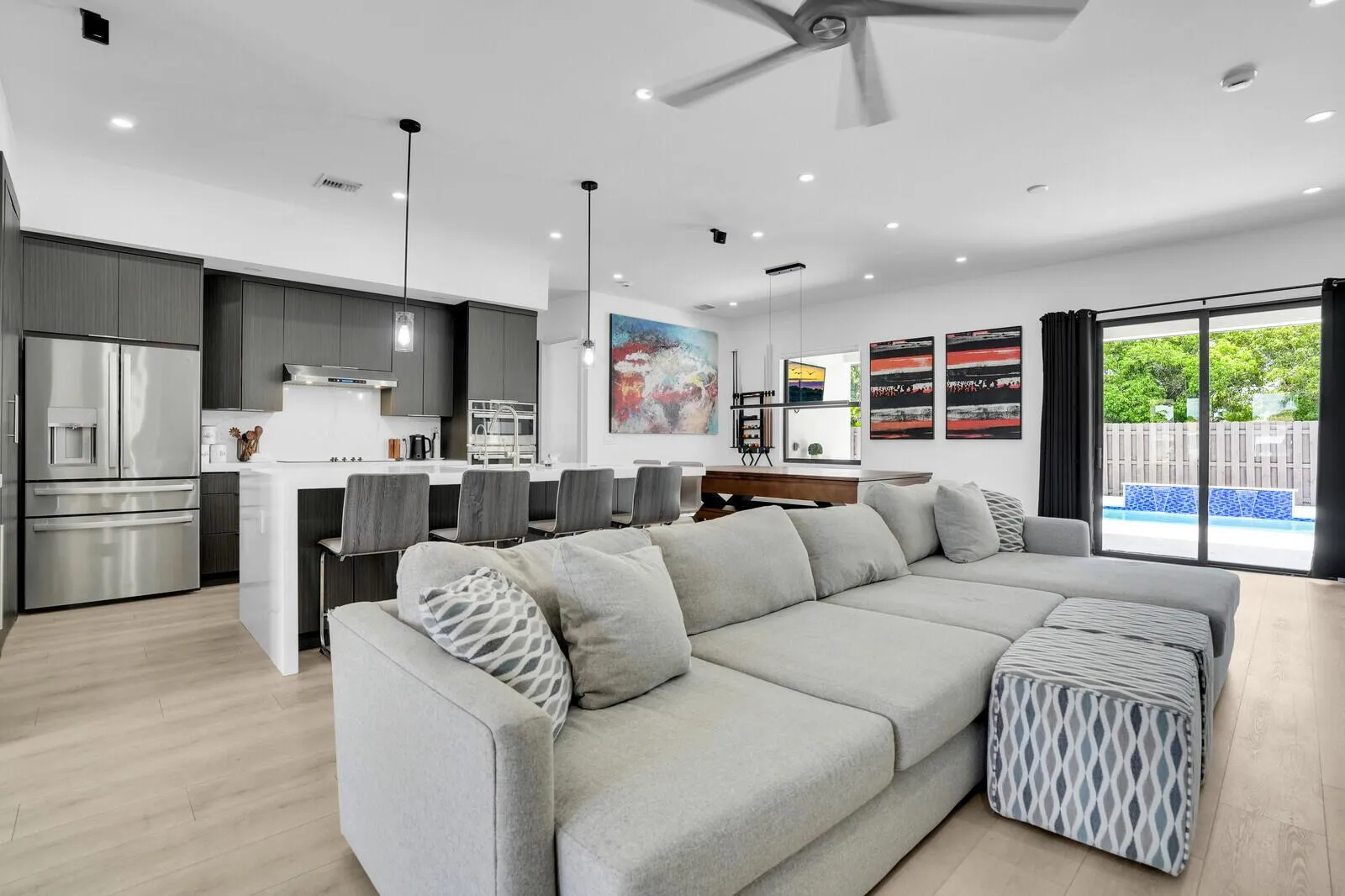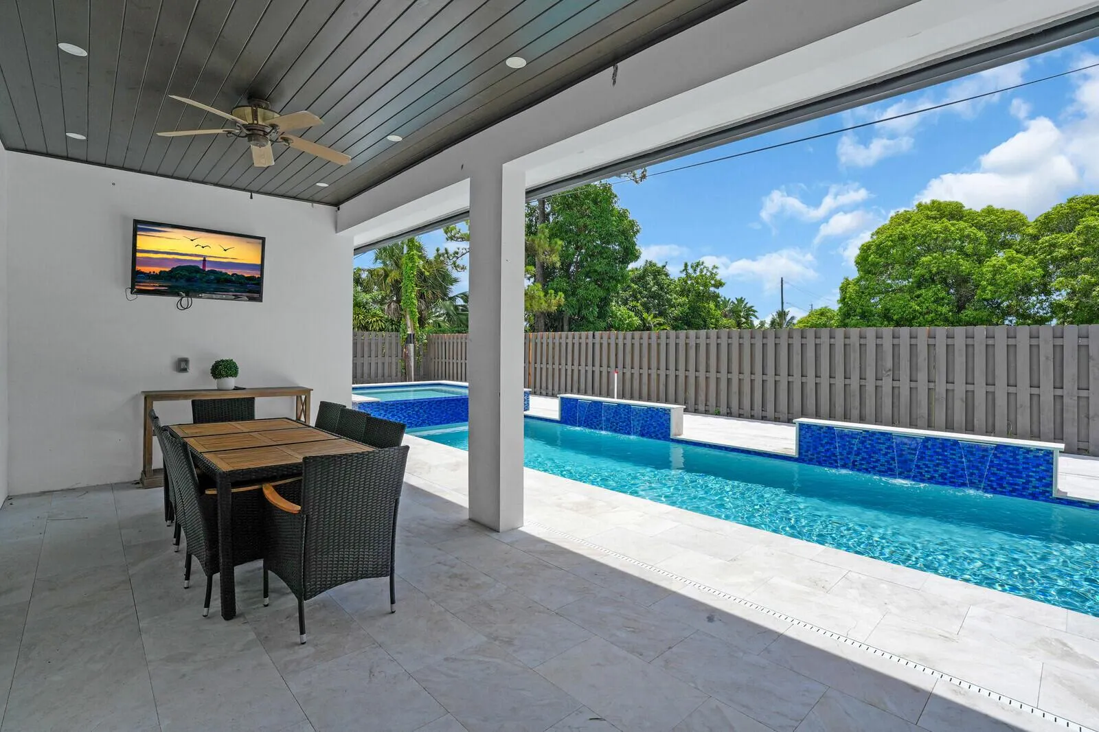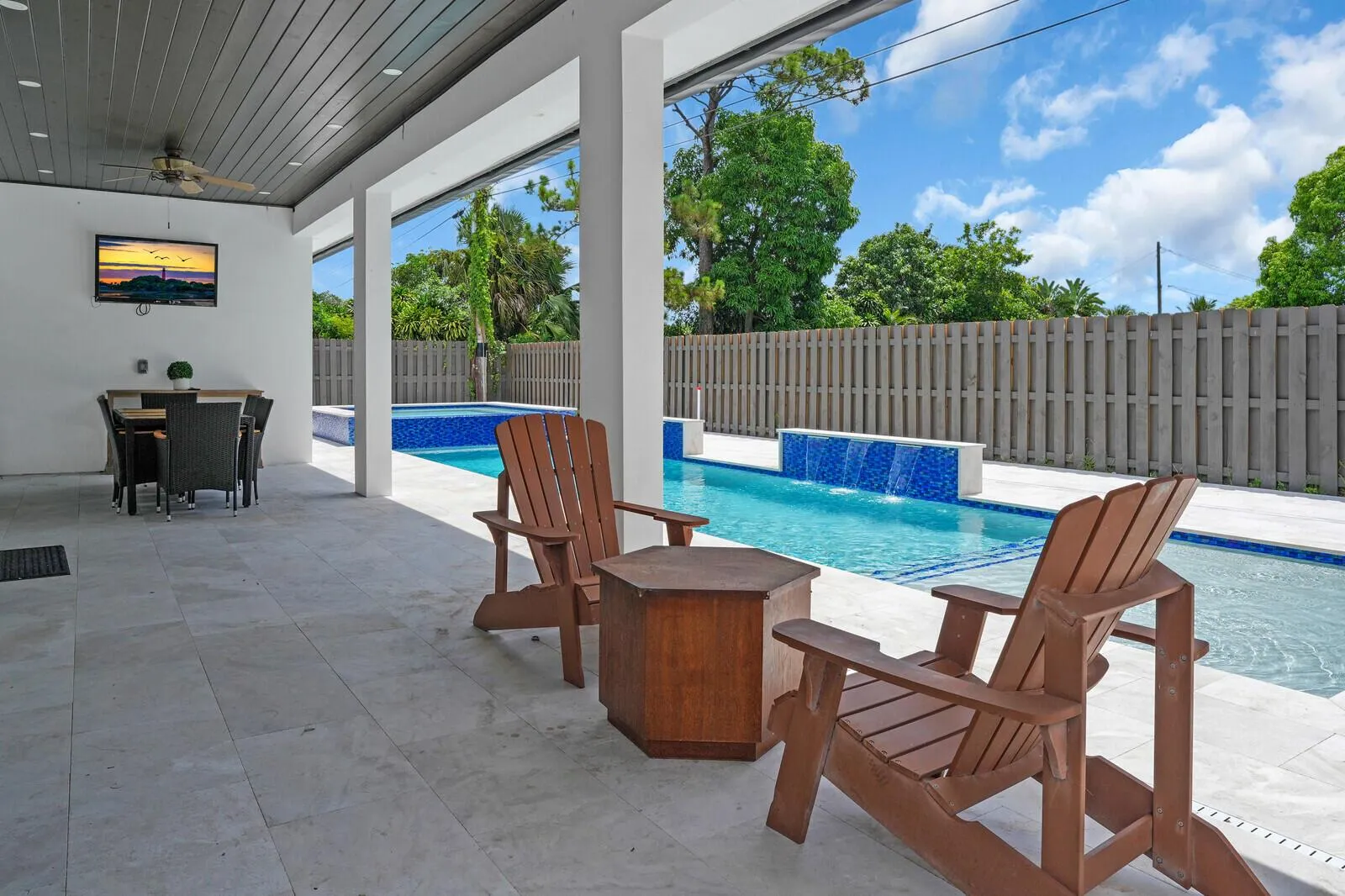 Back on Market- New Price! Stunning New Construction Home – No HOA! Welcome to your dream home! Built in 2024, this 4-bedroom, 3.5-bathroom residence offers luxury living with no HOA restrictions. Enjoy the convenience of a 2-car garage and the peace of mind that comes with impact windows and doors. Step into the heart of the home – a chef’s kitchen featuring high-end finishes, sleek cabinetry, and modern appliances. The open layout flows seamlessly into the spacious living areas and designer bathrooms, perfect for both relaxing and entertaining. Your private backyard oasis awaits! Take a dip in the sparkling pool, unwind in the hot tub, or lounge under the expansive covered patio–ideal for year-round enjoyment. A large, fenced-in side yard with a remote-control gate offers
