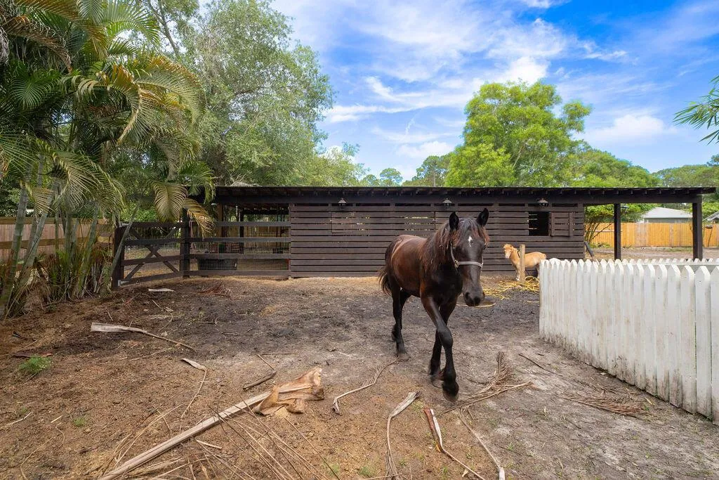 Experience the best of both worlds with this beautifully maintained pool home in Jupiter Farms–offering peaceful country living just minutes from all the conveniences of town. This versatile 4-bedroom, 3-bath layout is ideal for multi-generational living or potential rental income. The attached efficiency apartment features a private entrance, full kitchen with stainless steel appliances, vinyl flooring, quartz countertops and its own HVAC system. The main residence is a 3-bedroom, 2-bath split floor plan with a 2-car garage, high vaulted ceilings, LED lighting, and great natural light. The open kitchen overlooks the beautiful pool and travertine patio, perfect for entertaining. The primary suite includes a private office, walk-in closet, soaking tub, separate shower, and dual vanities.
