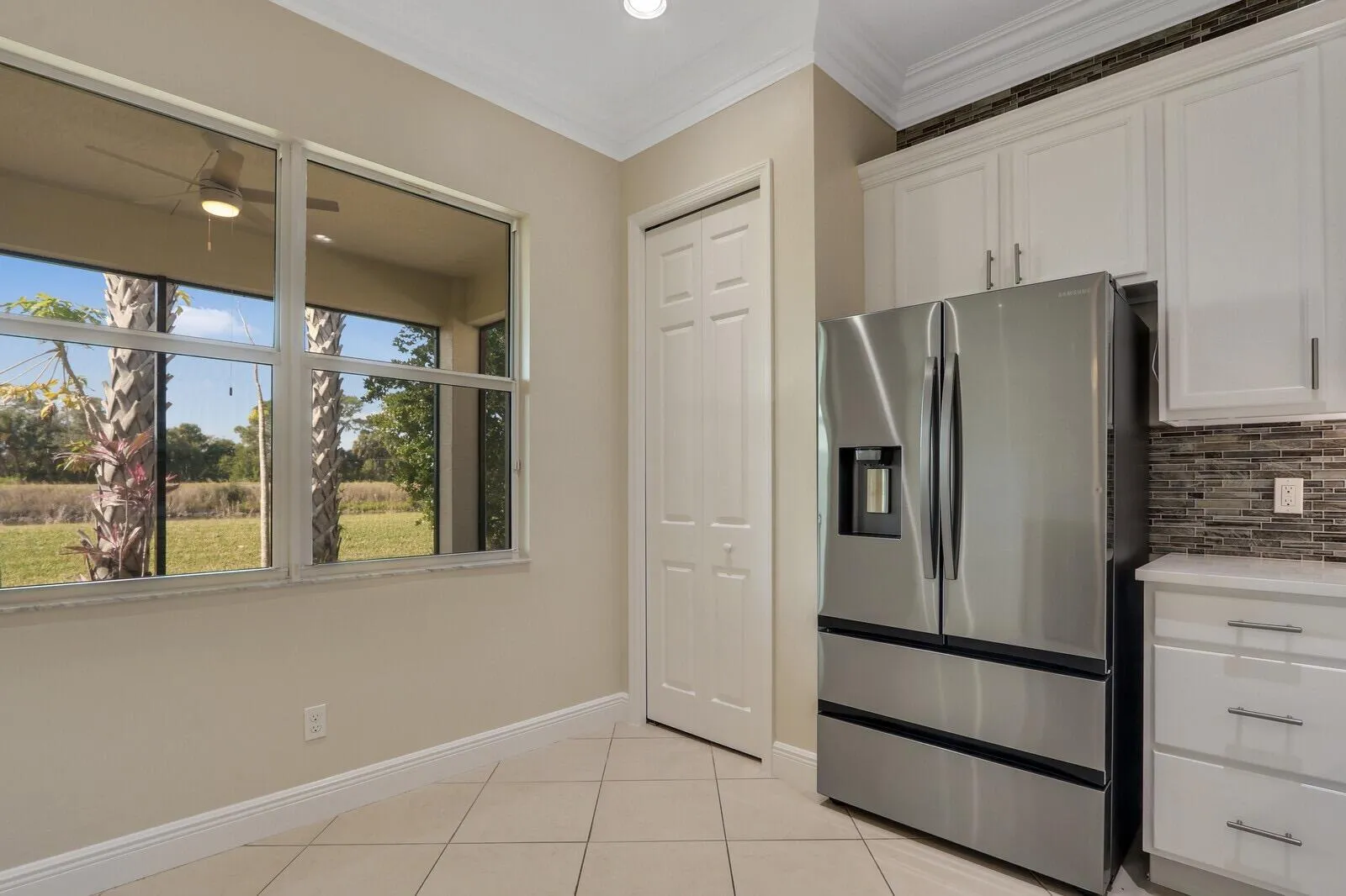 Located in the sought-after PGA Verano community, this move-in ready 2BR/2BA +Den/Office home feels like new and showcases many tasteful and thoughtfully selected upgrades throughout. Enjoy crown molding, recessed high-hat lighting, and a stunning designer kitchen with new Samsung stainless appliances, waterfall quartz countertops, pendant lighting, and full-height glass backsplash. Custom California Closets in all closets and pantry. Freshly painted interior, upgraded garage with epoxy flooring and space for your golf cart. Primary suite offers dual sinks, walk-in shower & Roman soaking tub.. Enjoy sunsets from the screened patio with C-24 Canal views. Lake view in front, near dog park, and easy access to entry gate. Double insulation in attic/garage adds energy efficiency. A must-see!