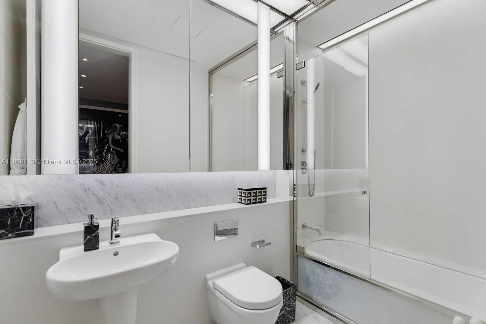 Finesse at the Faena House! This truly customized oceanfront residence blends timeless design with unrivaled service. KA Design Group curated every meticulous interior detail featuring minimalist stucco walls, terrazzo & oak flooring, custom drapes and closets, and a bar nook wrapped in leather. The white contemporary kitchen and primary bath are sleek statements that define this Foster + Partners masterpiece. An upgraded Crestron system seamlessly integrates lighting, climate & media. The ‘alero’ terraces span 1,300SF capturing  stunning ocean vistas and creating unparalleled indoor–outdoor flow. Beyond the privacy of the home, residents live in a 5-star setting featuring a world class spa, fitness center, oceanfront pools, beach club, and celebrated dining and cultural experiences.