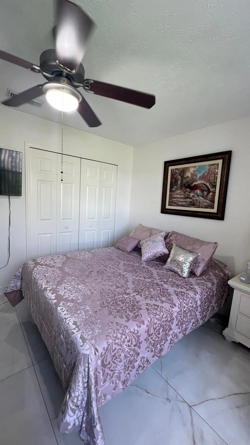 This beautifully upgraded concrete block (CBS) home features 3 spacious bedrooms, 2 bathrooms, and a 2-car garage, in a 55+ community on leased land. Enjoy the Florida lifestyle from the large screened-in patio and covered porch–perfect for relaxing or entertaining.Inside, you’ll find tile flooring throughout, walk-in closets for ample storage, and a modern kitchen equipped with stainless steel appliances. Conveniently located close to I-95.