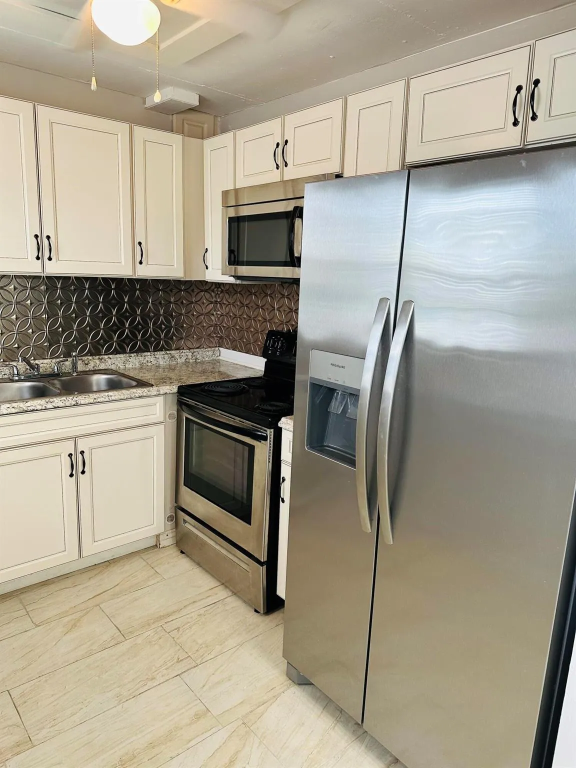 55+ Gated Community. Features a turn key updated condo situated on the first floor corner unit with stainless steel appliances, extremely bright and airy unit, freshly painted, lots of storage, walk in closet, screened in porch with central air. Immaculate. Century Village has many amenities to offer. Club house with 1200 seat theater for shows and movies, indoor and outdoor heated pools. Tennis, pickleball, shuffleboard and bocce courts. Health and fitness center, courtesy bus, beauty shop , boating and more. Close proximity to City Place, downtown and PBI airport and beaches. Manned gates and 24 hour security patrol.