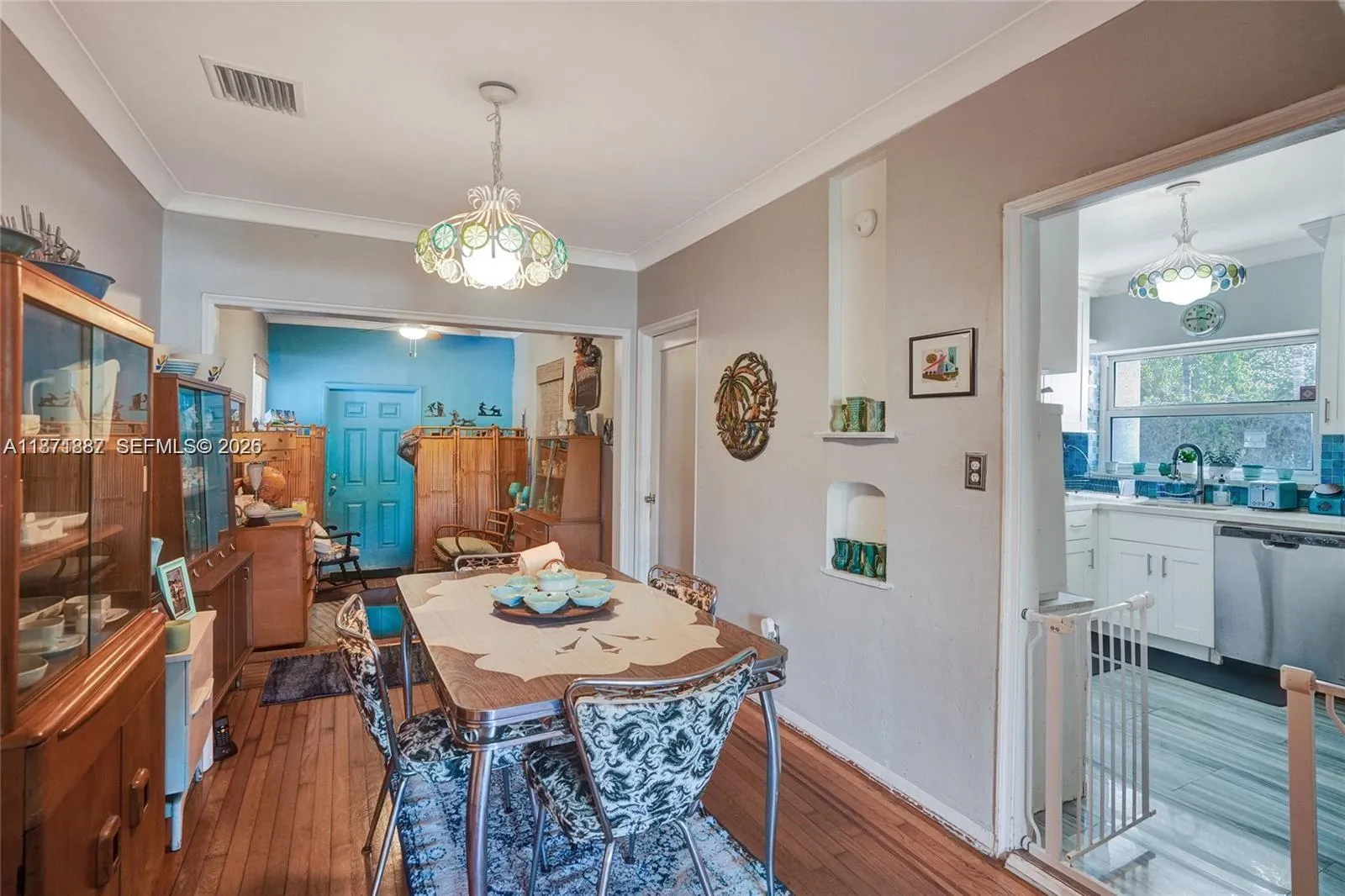 Located in the highly desirable Northeast Miami Shores neighborhood, this authentic 1938 gem beautifully blends timeless character with modern updates. Featuring a split floor plan for enhanced privacy and functionality, this 3-bedroom, 2-bathroom home sits on a generously sized 1.5-lot property—offering ample space to expand, add a pool, or simply enjoy the open yard. Move-in ready, the home boasts original wood floors, impact windows throughout, and a working fireplace adorned with a charming ship engraving, adding warmth and historic charm to the living space. The recently remodeled kitchen and bathrooms complement the home’s classic appeal with tasteful touches. A fully fenced yard with fruit trees offers privacy and endless potential for outdoor living.