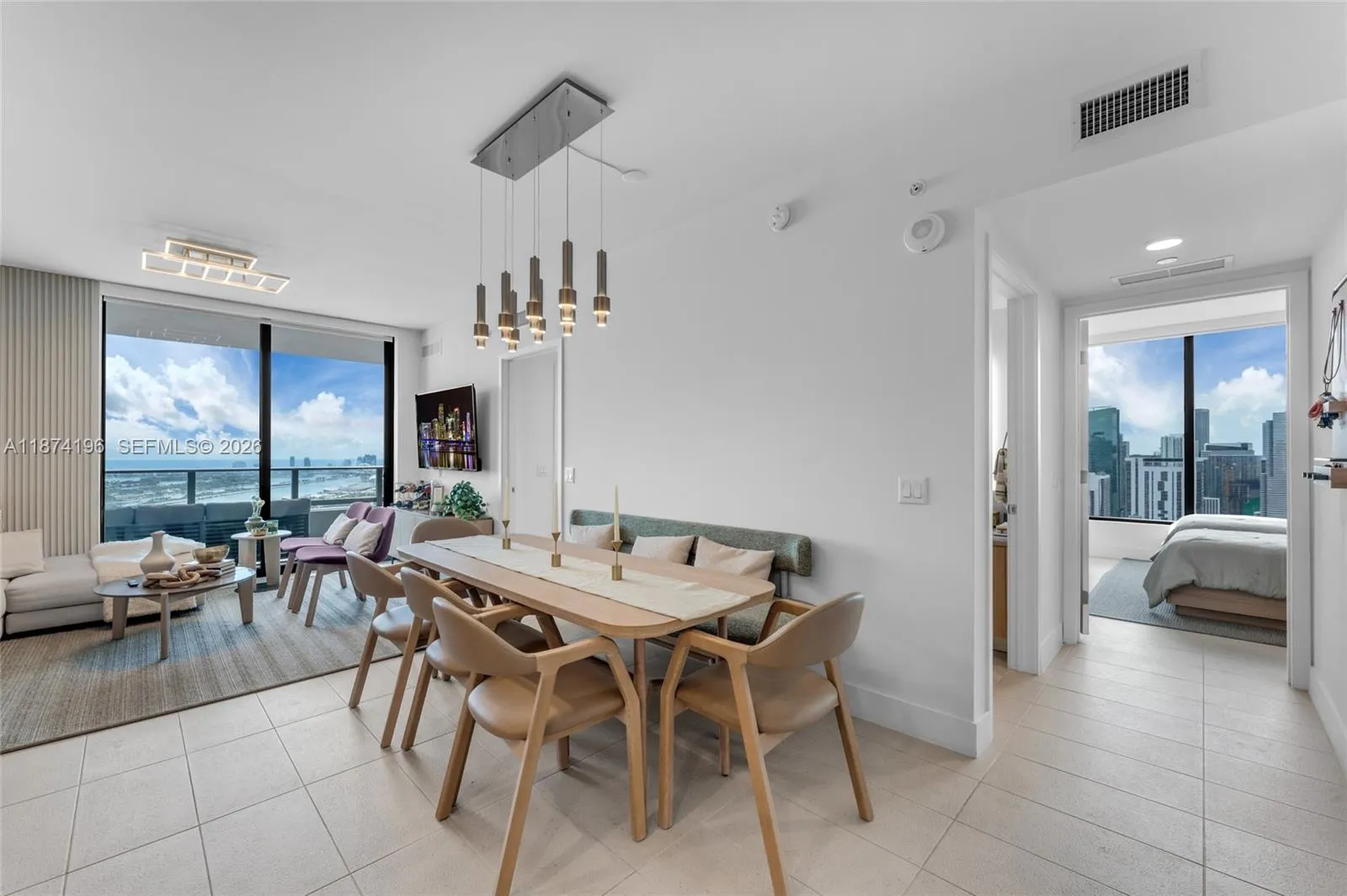 Exquisite fully furnished corner residence at Gale Miami (Natiivo) featuring 3 bedrooms, 3 bathrooms, and 1,230 sq. ft. of modern luxury. Designed by acclaimed firm Urban Robot, this home is meticulously curated with high-end designer furniture and custom décor, creating a sophisticated yet warm ambiance. Floor-to-ceiling windows flood the space with natural light and open to an expansive balcony with breathtaking views of Biscayne Bay, Port of Miami, and Miami Beach. Residents enjoy over 70,000 sq. ft. of resort-style amenities, including a pool deck with bay views, state-of-the-art fitness center, spa with sauna and steam room, co-working spaces, and multiple dining options. Located within Miami Worldcenter, steps from top restaurants, shopping, and entertainment.