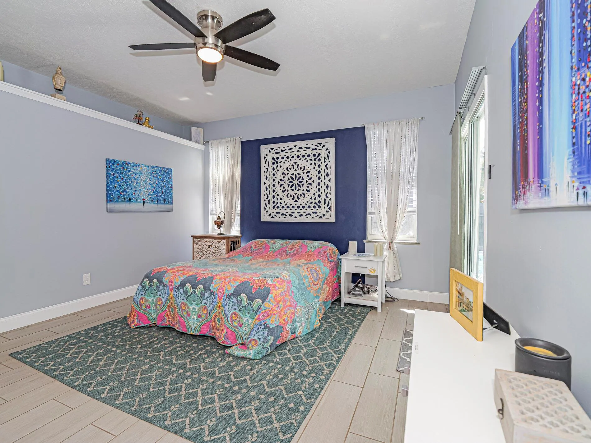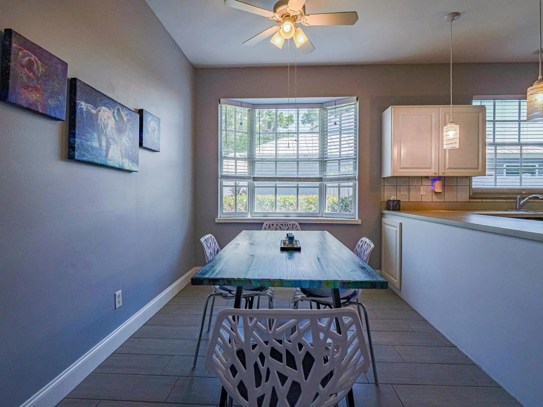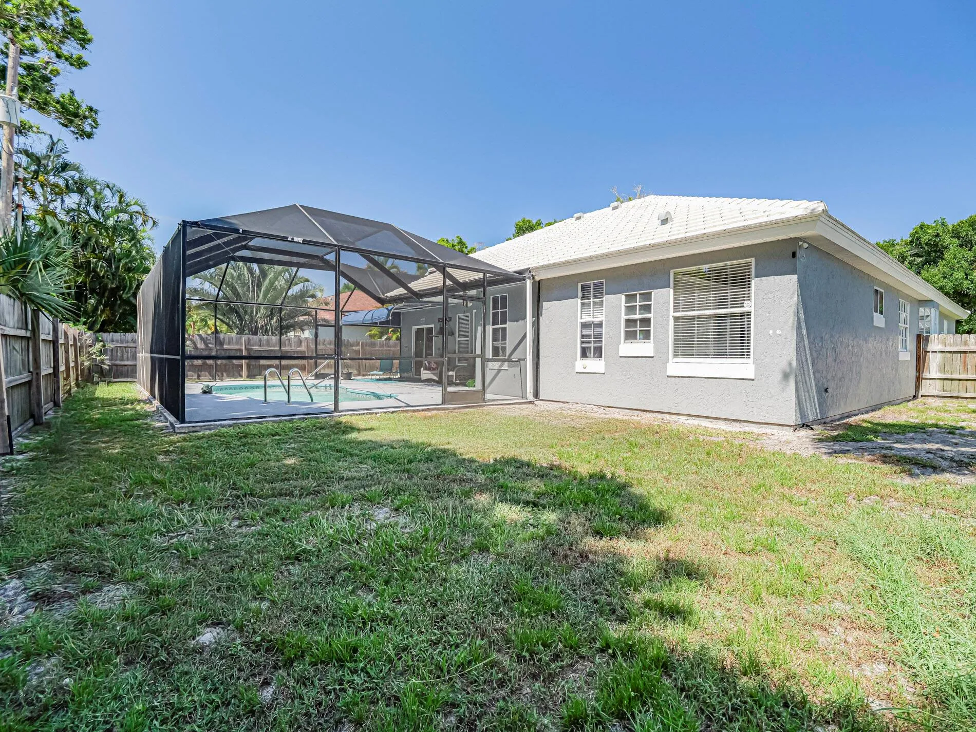 Just impeccable! Coastal delight with newer interior paint, tile floors throughout, volume ceiling in main home. Split BR plan –very large primary suite with newer tiled bath w/soaker tub, 2 other bedrooms share newer full tiled bath. Kitchen has walk in pantry, newer appliances, large 2 car garage, Barrel style cement roof. So many updates! Newer pool heater and hot water heater, newer motor in a/c. Quiet street and no HOA fees.