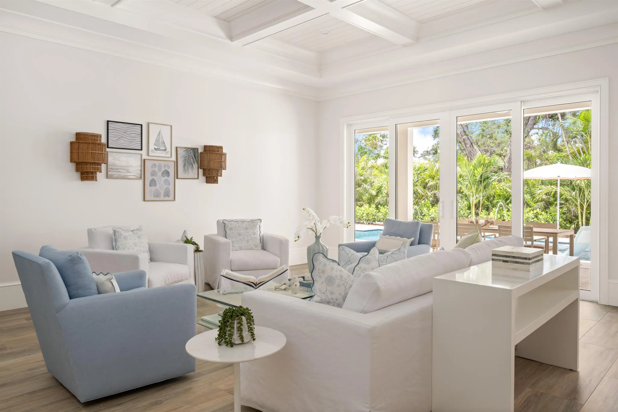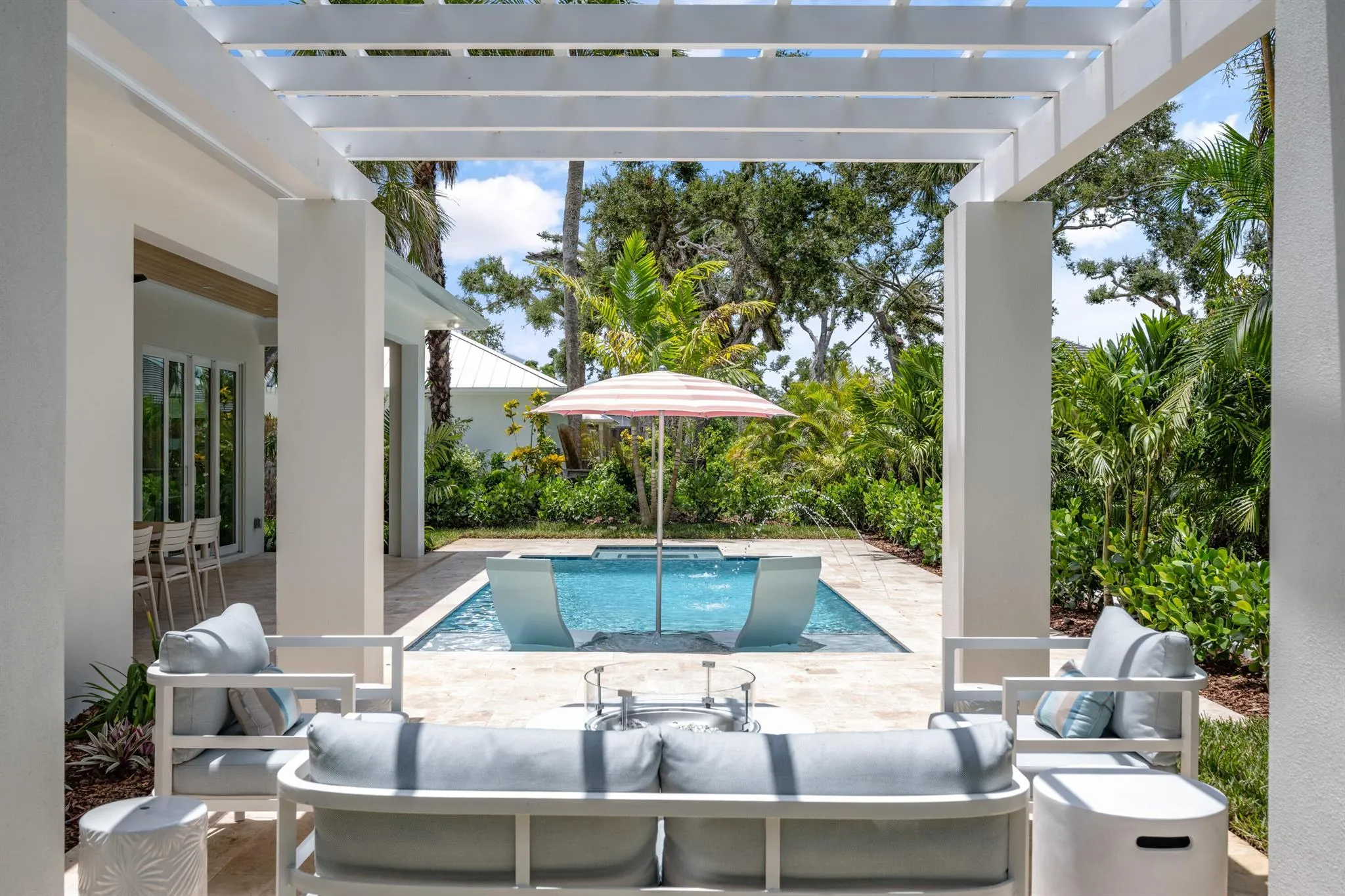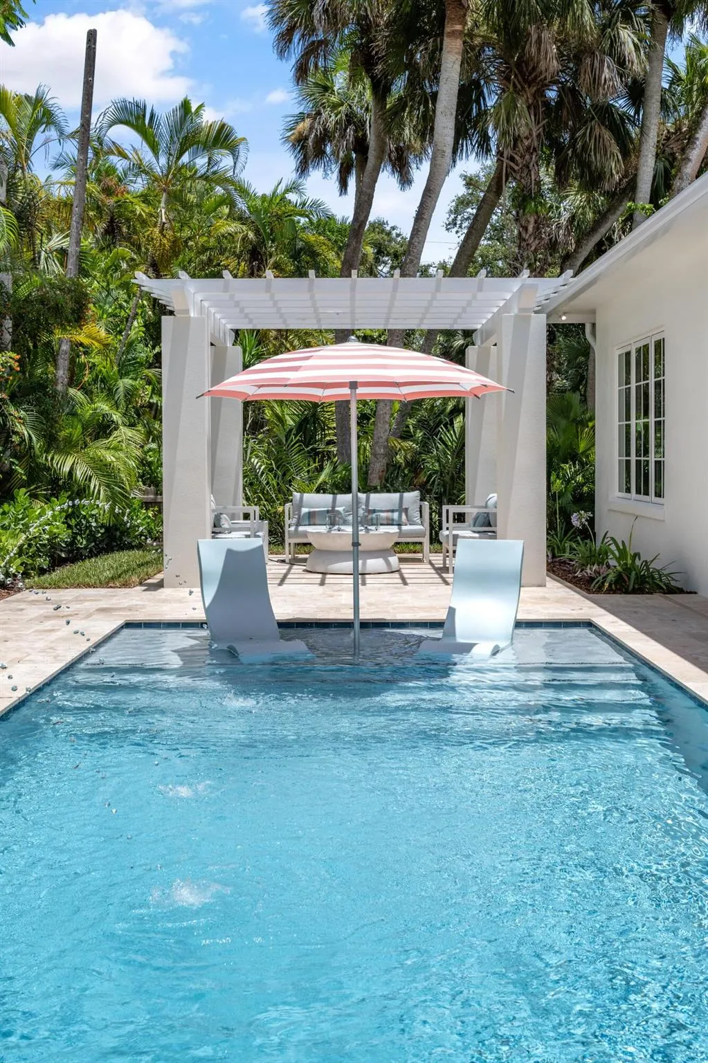 Brand-new custom home in the heart of Central Beach. Offering over 2600 AC SF, thoughtfully designed with top-of-the-line finishes including 10′ nickel joint coffered ceilings, wood-look tile flooring throughout, real wood crown molding, impact windows/doors, Solid-core interior doors, custom Amish built cabinetry with walnut constructed drawers, Taj Mahal quartzite & marble counters, custom-built closets, and high-end appliances. Outdoors features new custom saltwater pool w/ sundeck, built-in summer kitchen with gas grill, new lush landscaping, & tongue-and-groove cypress outdoor ceilings.