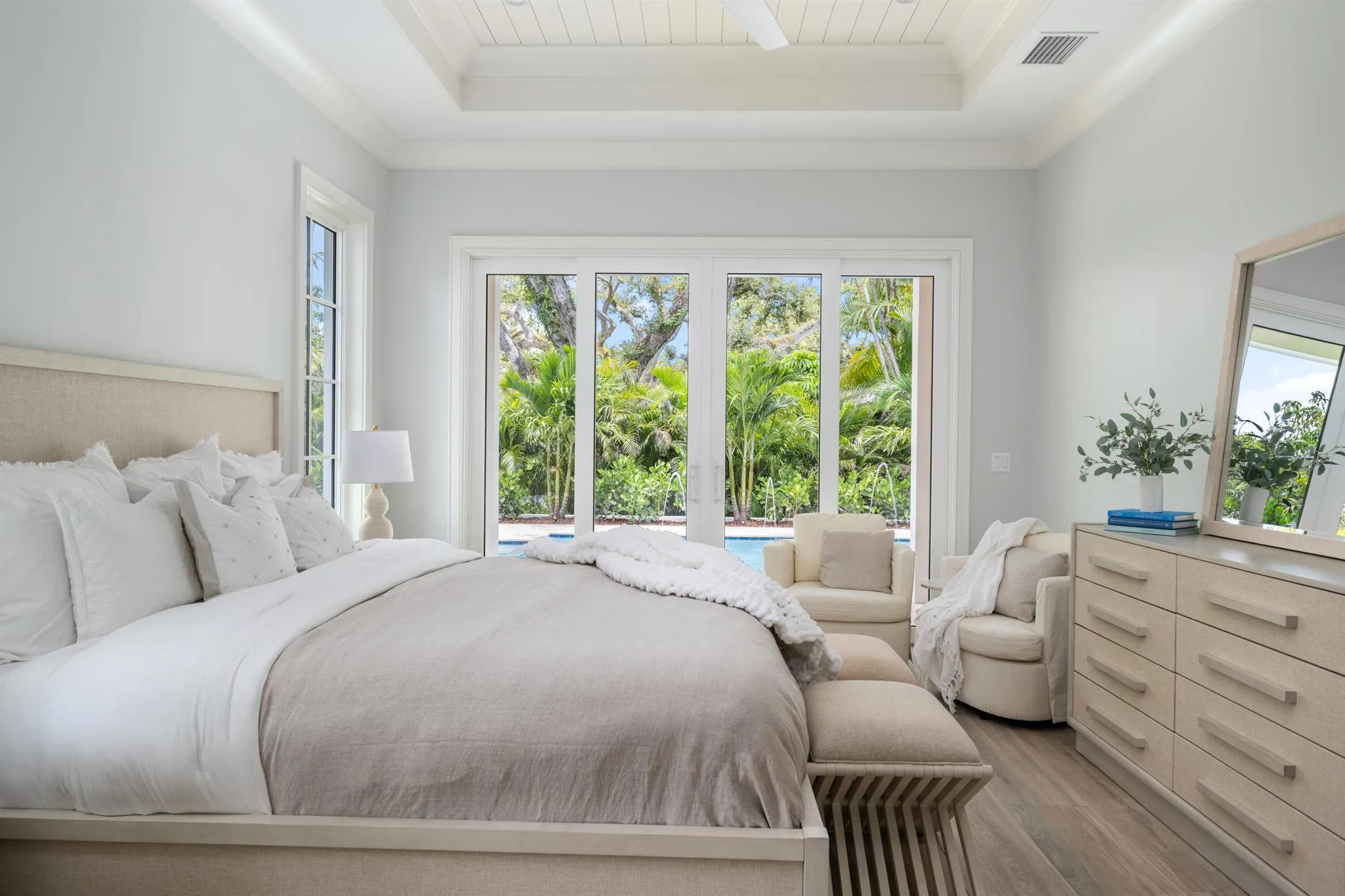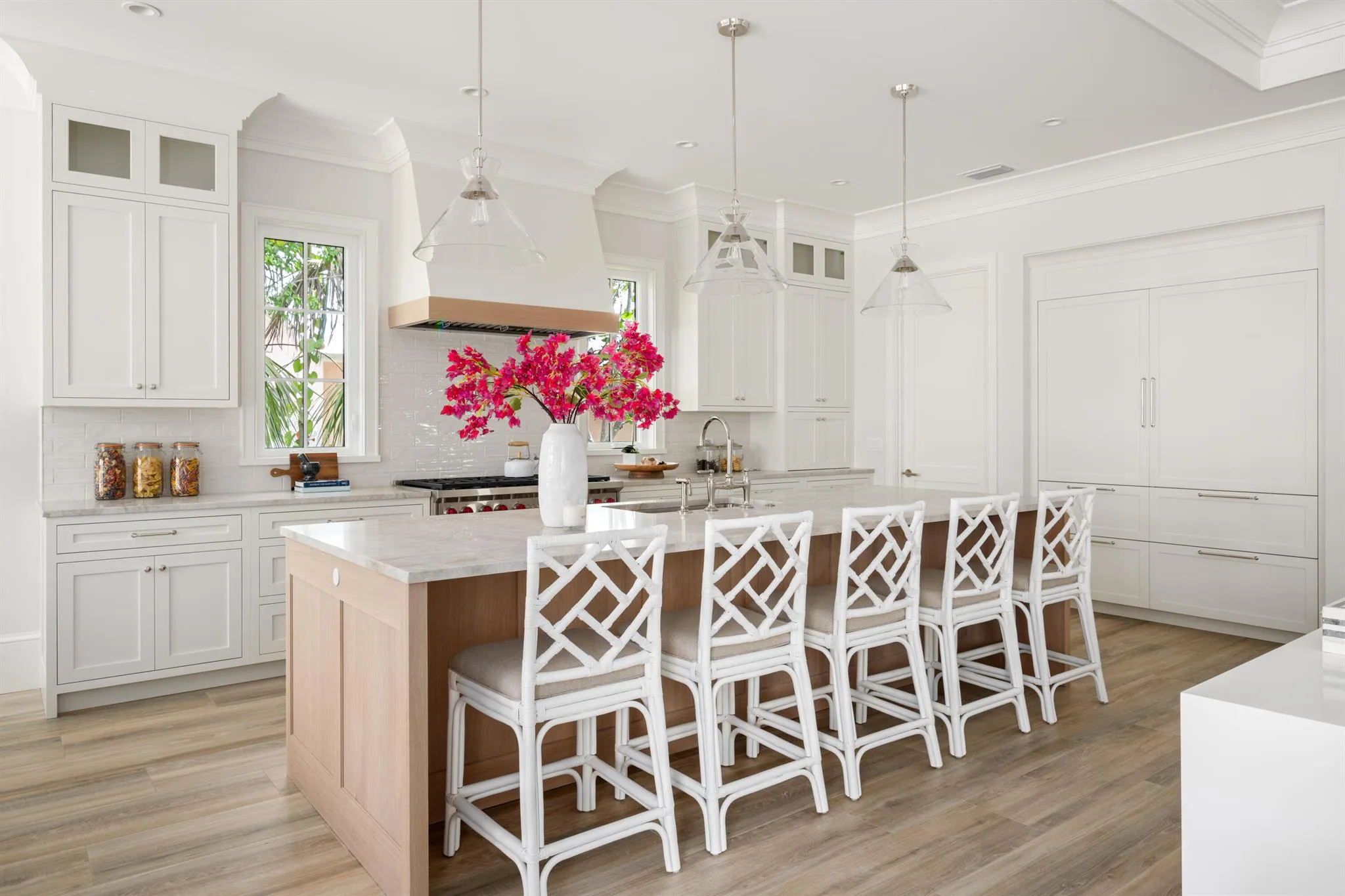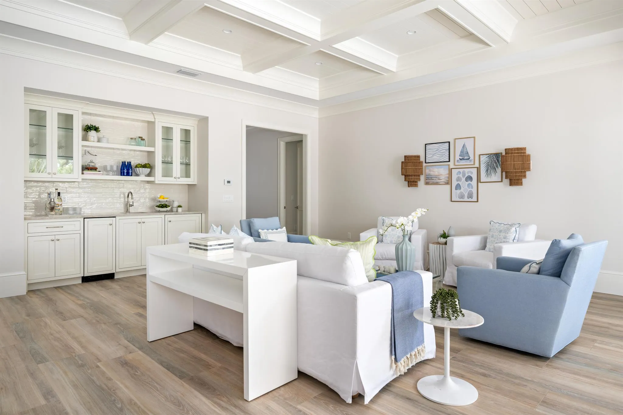 Brand-new custom home in the heart of Central Beach. Offering over 2600 AC SF, thoughtfully designed with top-of-the-line finishes including 10′ nickel joint coffered ceilings, wood-look tile flooring throughout, real wood crown molding, impact windows/doors, Solid-core interior doors, custom Amish built cabinetry with walnut constructed drawers, Taj Mahal quartzite & marble counters, custom-built closets, and high-end appliances. Outdoors features new custom saltwater pool w/ sundeck, built-in summer kitchen with gas grill, new lush landscaping, & tongue-and-groove cypress outdoor ceilings.