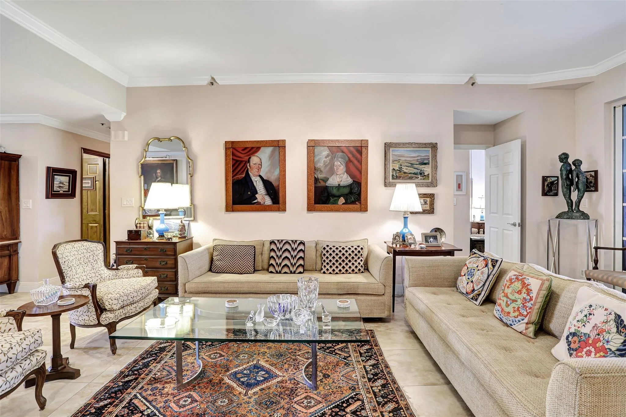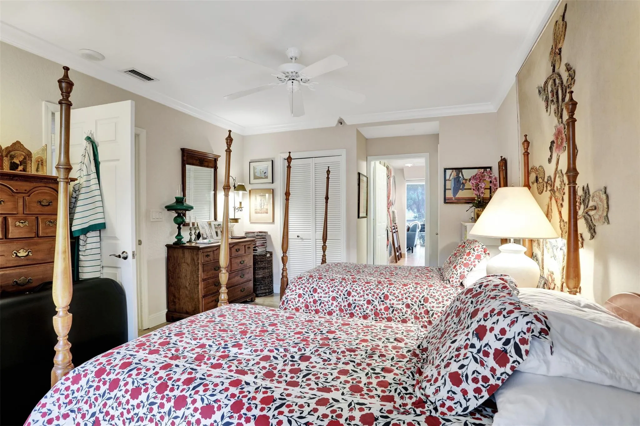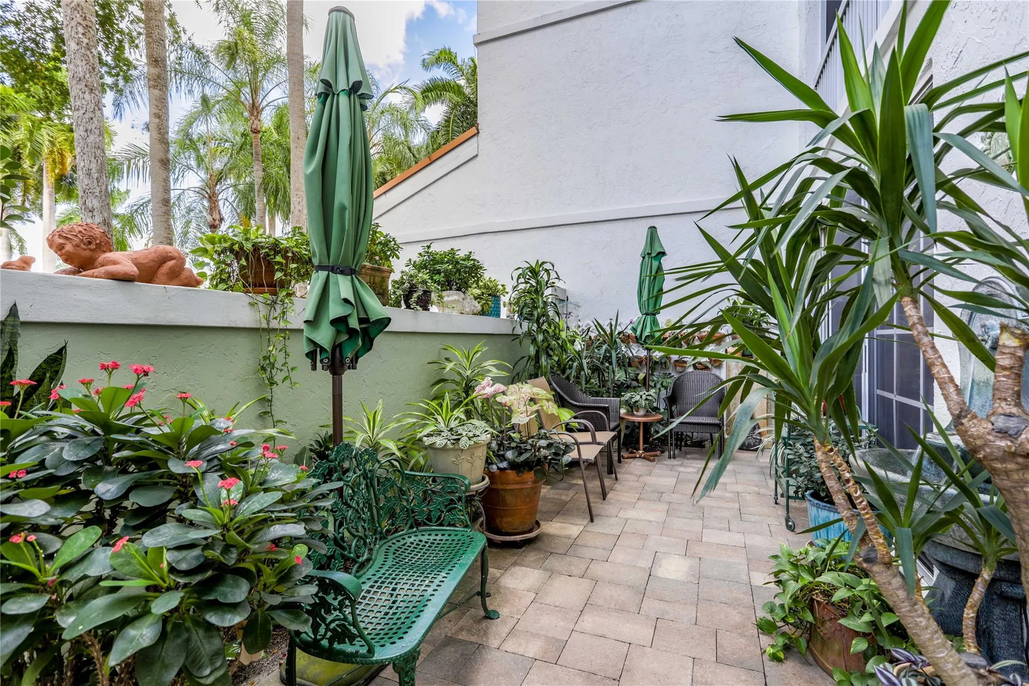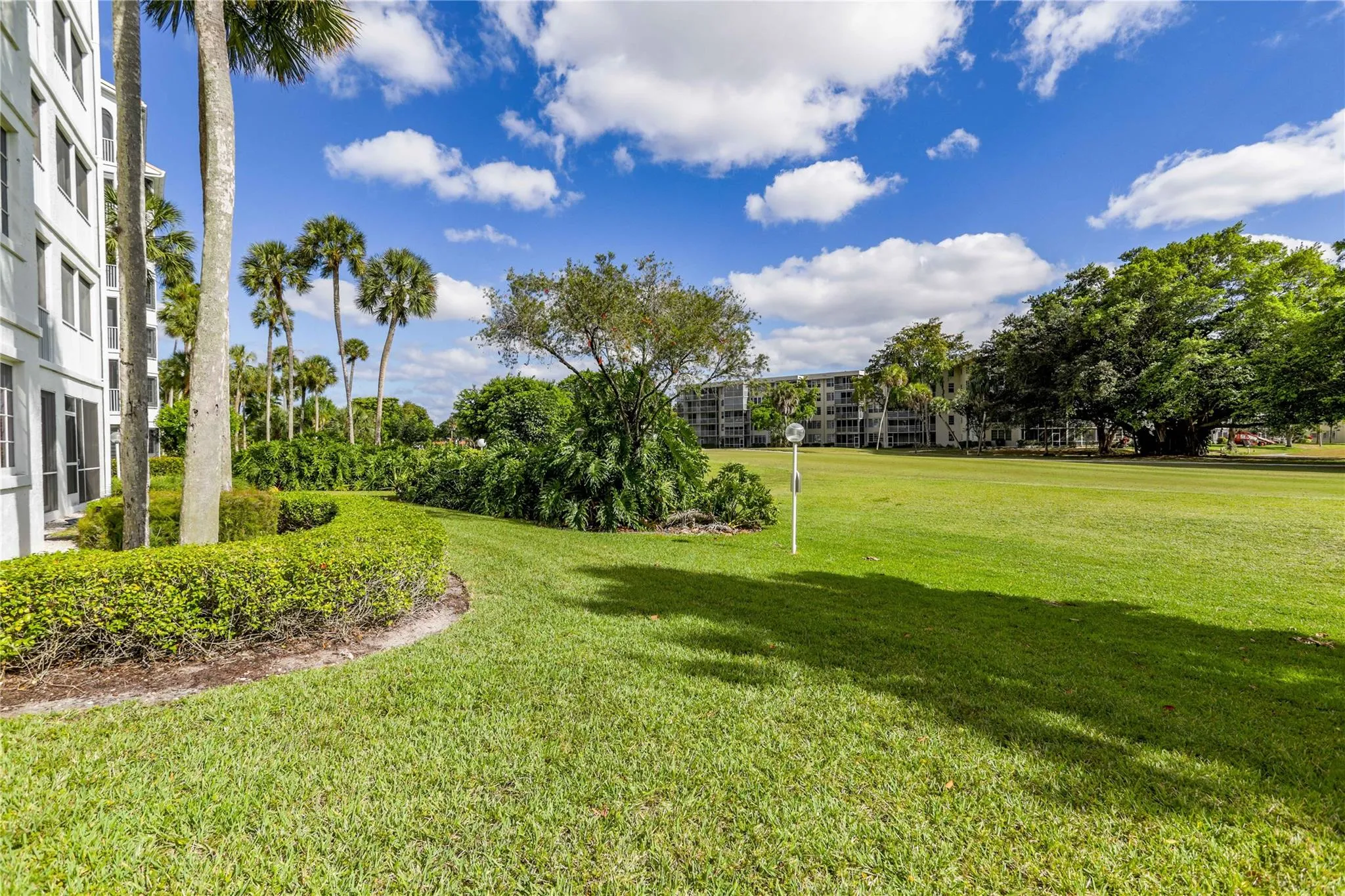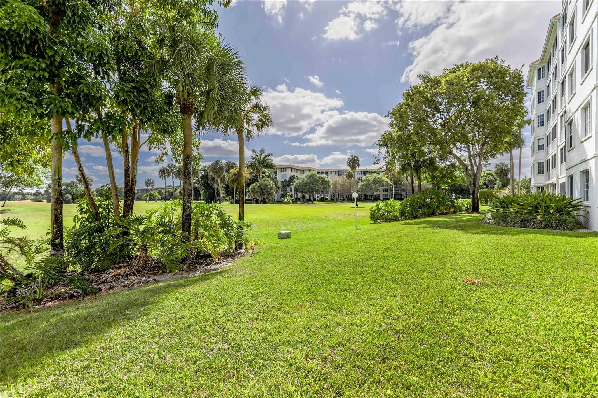 Perfect first-floor featuring a private, charming outdoor garden that offers the feel of a single-family home with the security of condo living. Enclosed glass patios expand the living space. The primary bedroom and office/third bedroom overlook the golf course, while the secondary bedroom includes a sitting area and direct access to the private garden. The spacious primary suite offers a large walk-in closet and an en-suite bath with dual sinks, a Roman tub, and a separate shower. Wet bar in the family room, an interior laundry room with full-size washer and dryer, abundant closet space, and a dedicated storage room. One covered parking space plus ample parking. Gated with a secured lobby, an additional private entrance from garden, and a clubhouse with heated pool just a short walk away.