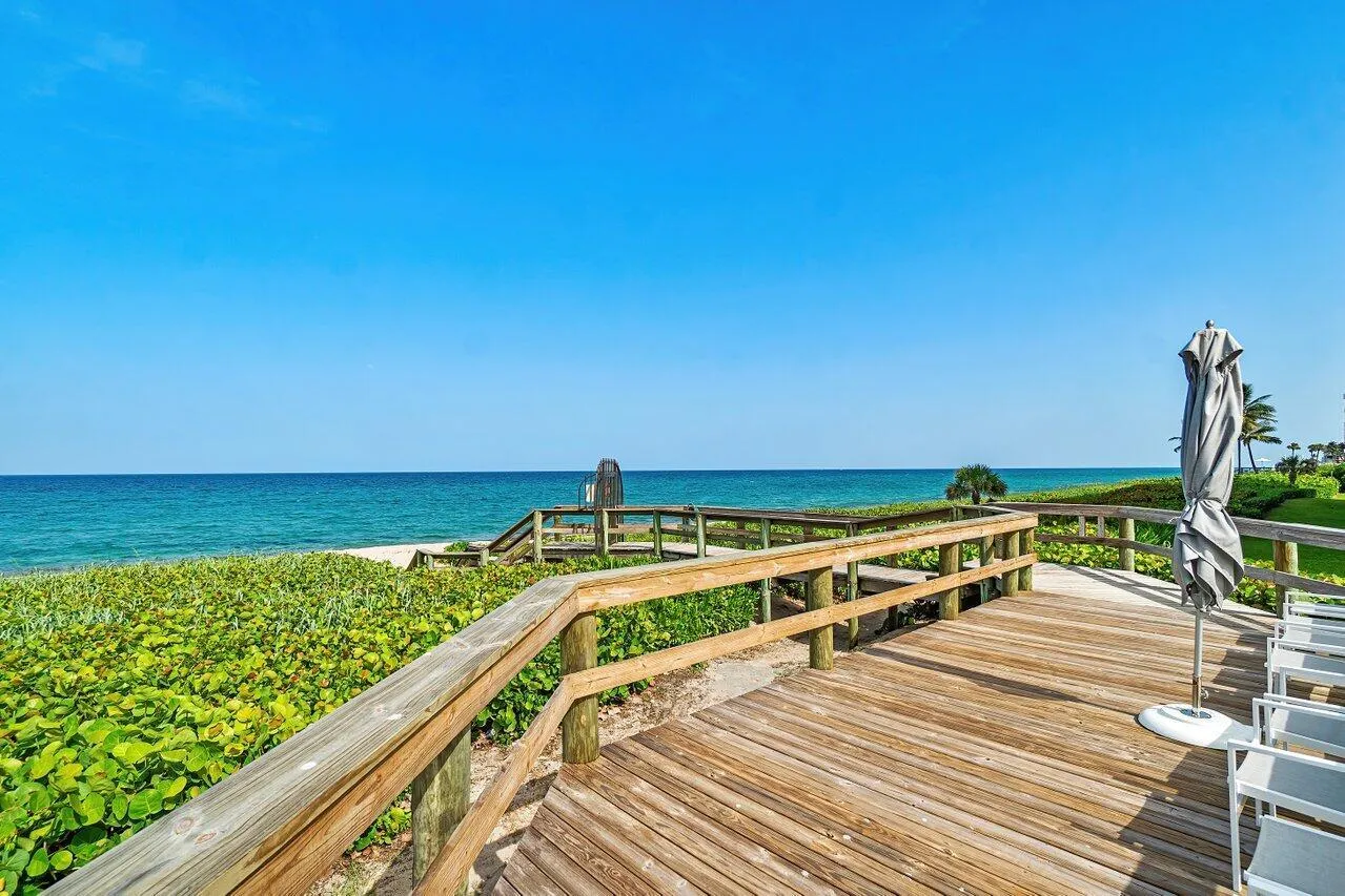 Your 2 pets are welcome at this newly Renovated Direct Oceanfront wraparound 2 Bedroom – 2.5 Bath corner residence in the exclusive Palm Beach Hampton. This light bright and airy contemporary home offers a coastal feel with open spaces & forever ocean views. Every room is beautifully detailed with porcelain tile, custom lighting & built-ins. The oceanfront master suite features floor to ceiling glass, custom closets, a stunning bath with dual sinks, marble shower & soaking tub. The guest suite has 4 custom bunk-beds that can accommodate all your children & grandchildren. The newly designed kitchen is an epicure’s delight with Wolf & Subzero appliances and island seating for 6. There is a beautifully designed workplace with custom built-ins and separate powder room with elegant cabinetry &