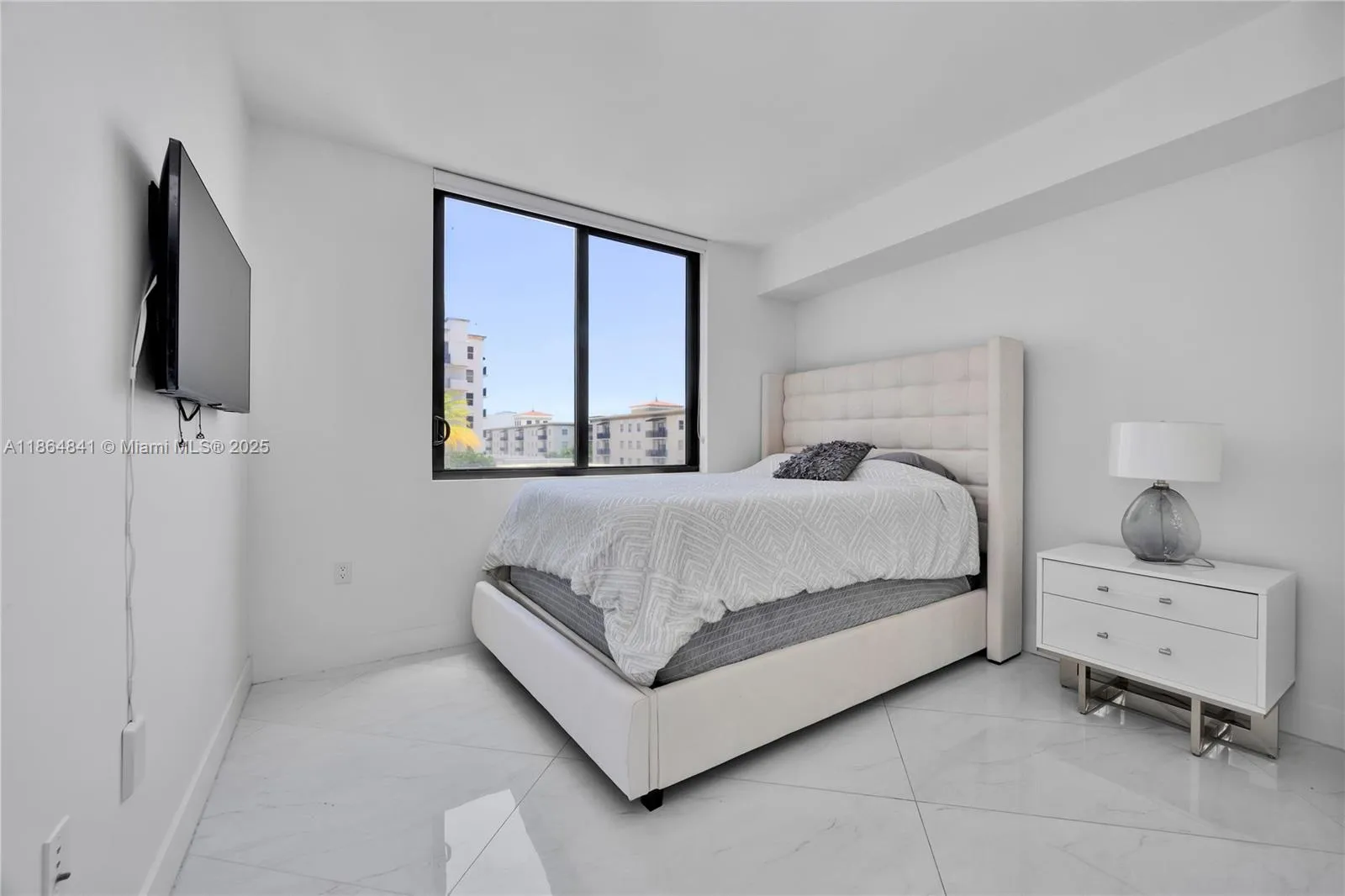 Experience the best of Coral Gables living in this beautifully maintained 2-bedroom, 2.5-bath condo featuring impact windows and doors, Italkraft cabinets, quartz countertops, Bosch appliances, a Nest thermostat, and keyless locks. The spacious primary suite includes a walk-in closet and a spacious en-suite bath, while the second bedroom offers custom built-ins and its own private bathroom. A dedicated laundry room with washer and dryer adds convenience. Step out onto the open terrace to enjoy relaxing street views. The building offers impeccable resort-style amenities and services, including a saline-heated pool, summer kitchen, upscale fitness center, 24-hour concierge and security, and valet parking.