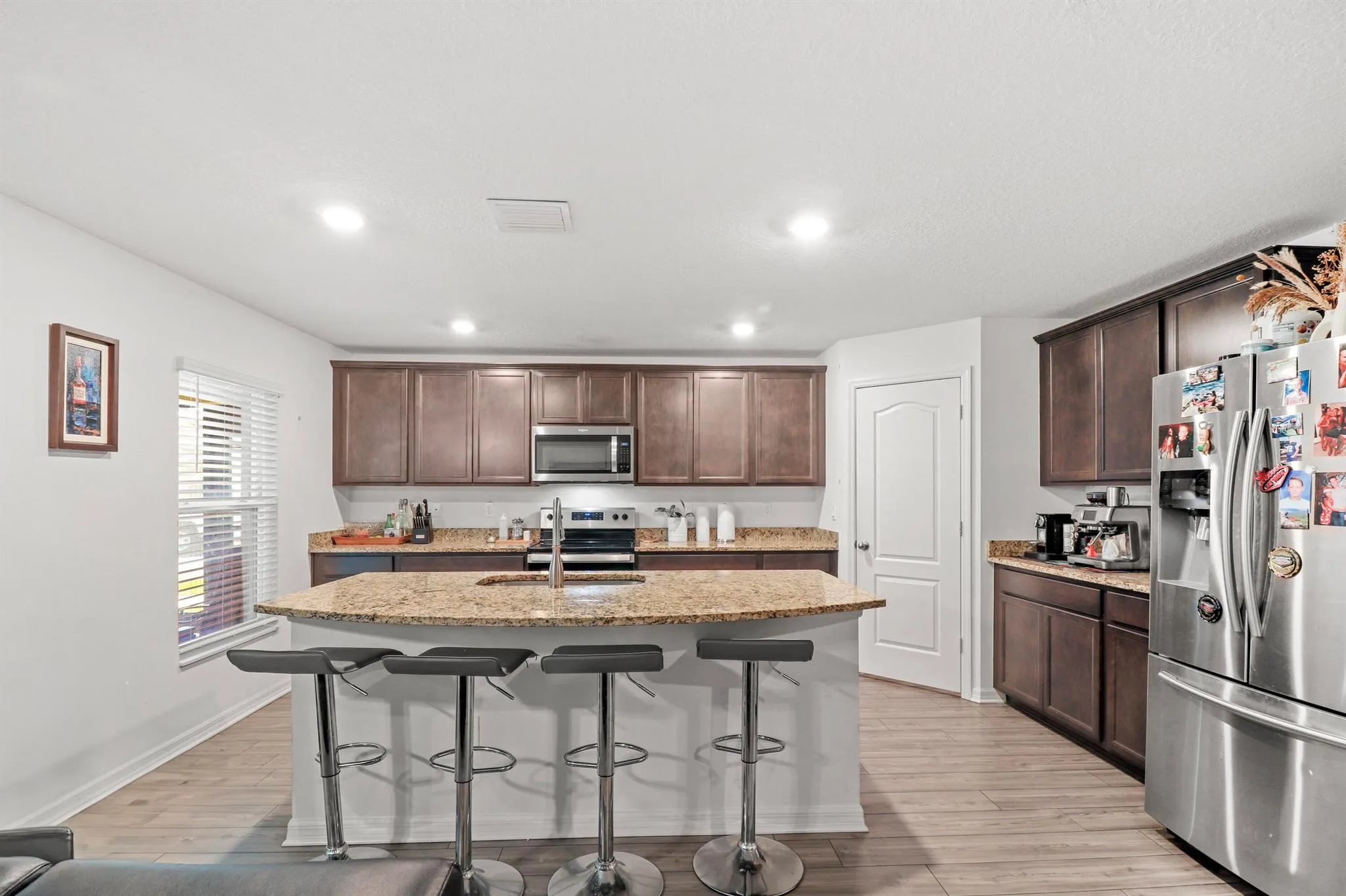 Built in 2022, this 5-bedroom, 3-bathroom home offers nearly 2,000 square feet of low-maintenance, modern living. Beautiful inside and out, it features an open-concept layout, upgraded flooring, and a stylish kitchen with granite countertops, stainless steel appliances, and ample cabinet space. The spacious primary suite includes a private bath and a large walk-in closet, while the additional bedrooms offer flexibility for family, guests, a home office–or all of the above! Situated on a large corner lot in a desirable HOA community with a sparkling pool, this home also features a screened-in patio perfect and oversized corner lot. Conveniently located near shopping, dining, schools, and major highways, it’s move-in ready and full of modern charm. Unapproved Short Sale.