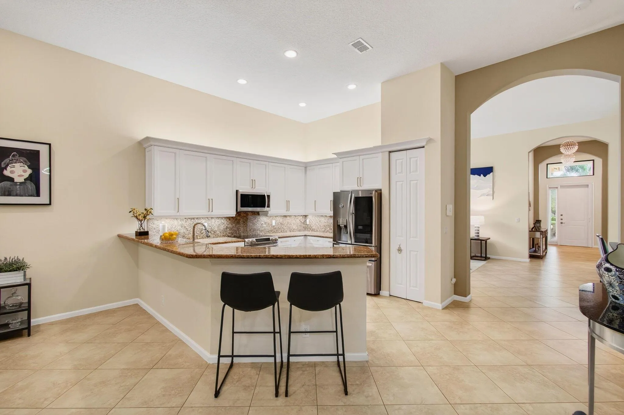 EXCEPTIONALLY PRICED and beautifully designed, this light-filled, 15-year-old Sauvignon model is the largest 3-bedroom layout in the Vintage Collection–offering both a formal living room and a spacious family room, soaring ceilings, contemporary flair, and plenty of wall space to showcase your art and travel treasures. Best of all, enjoy the rare convenience of walking to the clubhouse directly from your backyard–just across the street!