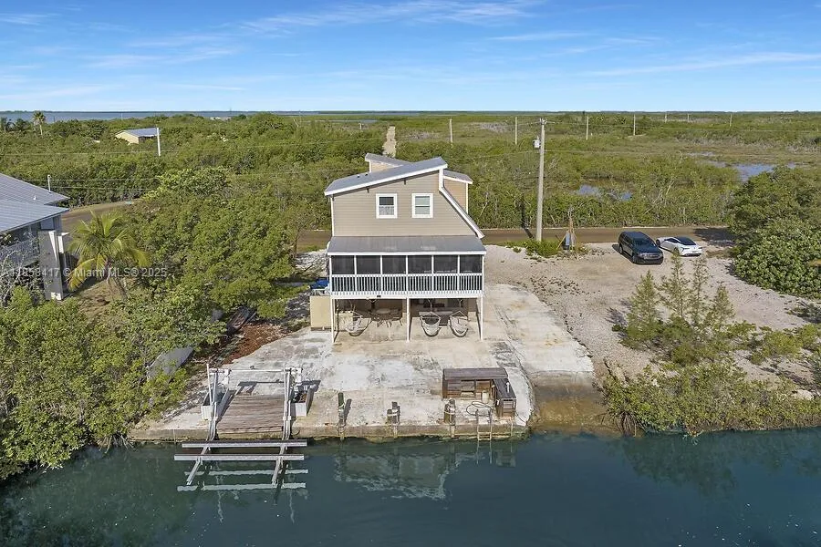 Charming 2BR/2BA Keys home on Upper Sugarloaf. FULL HOUSE GENERATOR WITH TRANSFER SWITCH,rnBuilt on sturdy concrete pilings with Hardie board siding and a metal roof, Large workshop, storage space on first level with Laundry room, this three-story retreat of island living. Inside, you’ll find bright, cozy interiors with bamboo and ceramic tile floors and open living spaces for the relaxed Keys lifestyle. What truly sets this property apart is its rare private boat ramp on a deep-water canal with a boat lift—a feature difficult to replicate under today’s strict permitting process. Enjoy quick access to the open waters. Lot also provides plenty of room oasis to add a pool overlooking the canal. Whether as a full-time residence or vacation escape.