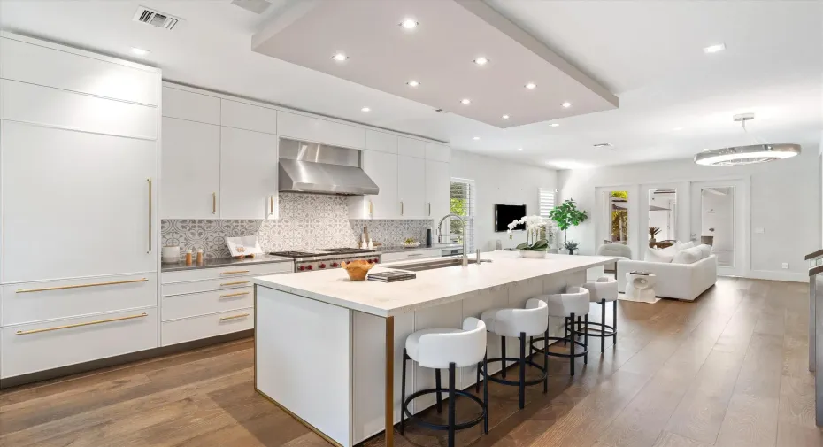 Dream Alton pool home with rare first floor master for the most discerning tenants and a studio/mother in law apartment with full kitchen and bath and private entrance. Completely customized home by New York designer. One of a kind interior finishes. Unique custom German cabinetry, a true chefs kitchen with Sub-Zero/Wolf appliances including steam oven. Wide plank wood floors, artisan finishes, stair rails fabricated on-site, whole house H2O filtration, smart home with indoor/outdoor music. Rare Southern exposure yard on an oversized lot. Spa inspired pool with mosaic tile and white limestone deck with heavily fortified landscaping add to the privacy of this tranquil one of a kind paradise retreat. The front of the house sits on a green space. Open the front door and you are transported.