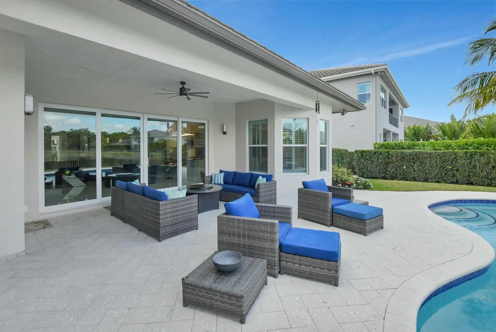 Stunning home with designer finishes throughout! Appraised at $1.8M & offered at $1.575M. This 3 Bedroom, Huge Flex Room, 4 Bathroom, Berkeley neighborhood home blends luxury and privacy. Enjoy soaring ceilings, a chef’s kitchen with granite counters and premium appliances, and a private backyard oasis with a heated pool and spa with breathtaking long lake views. A rare side easement adds extra privacy. Located in a boutique gated community with no membership fees, minutes from A-rated schools, South County Regional Park, Coconut Cove Waterpark, and Osprey Point Golf. Schedule your private showing today!