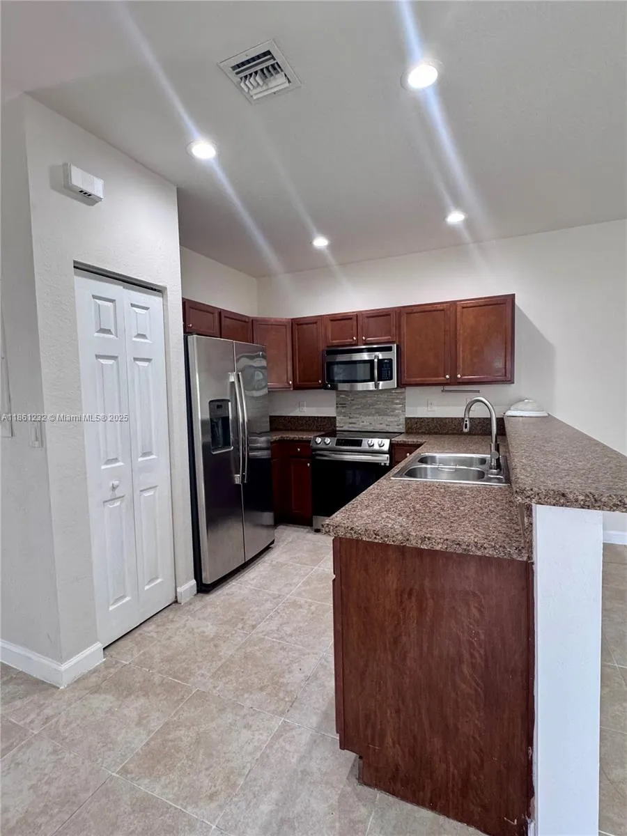 Welcome to this beautifully townhouse featuring eco-friendly solar panels and a TESLA Powerwall Battery, which helps to keep your home powered during outages and also reduces your monthly electricity costs. Enjoy a charming paver patio, perfect for relaxing or entertaining.rnInside, you’ll find no carpet and wooden floors in the second level, offering a clean and contemporary living space. Located in a quiet, family-friendly community, residents enjoy access to resort-style amenities including a large pool, sauna, jacuzzi, and a children’s playground — ideal for families of all sizes.rnConveniently situated just 5 minutes from Baptist Hospital, top-rated schools, shopping centers, and with easy access to the Florida Turnpike, this home offers the perfect blend of comfort, and location.