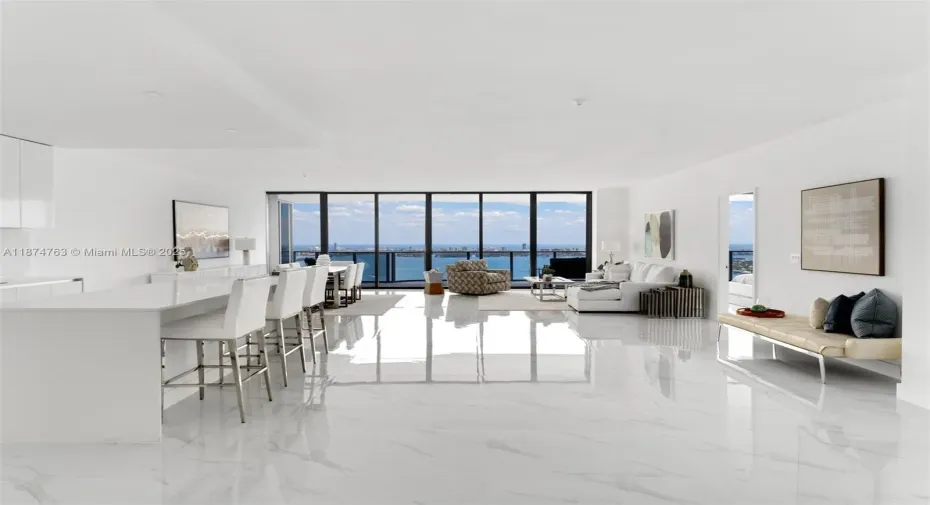 Welcome to Skyview Villa 4702 at Aria Reserve—- an extraordinary residence soaring above Miami on the 47th floor. This brand-new, never-lived-in condo offers 5 bedrooms, 5.5 bathrooms, in 3,670 sq ft of total space and complete privacy, with panoramic views of Biscayne Bay, the Atlantic Ocean, and the city skyline. Floor-to-ceiling impact glass floods the space with natural light, showcasing breathtaking views from every room. Designed for refined living, the open layout provides a serene canvas to personalize your dream home in the sky. With high-end finishes, an open-concept kitchen with Thermador appliances, a spa-inspired primary bath, two private elevators, and three assigned parking spaces, experience elevated luxury in one of Miami’s newest towers.