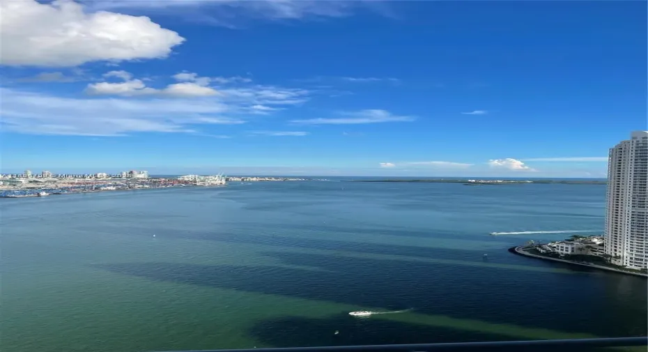 Spacious 3/2 with views from every room. Unit has marble floors throughout, upgrade with glass shower door in master bath, kitchen with wood cabinetry and granite countertops, direct bay and southeast exposure to Brickell key and Key Biscayne, also views north to Downtown Miami skyline. Full service building with fitness center, pool, mini market, two restaurants on site. At your footsteps is Bayside market, FTX arena, metro mover, short distance to Brickell City Center, Whole Foods, shops, entertainment and so much more.