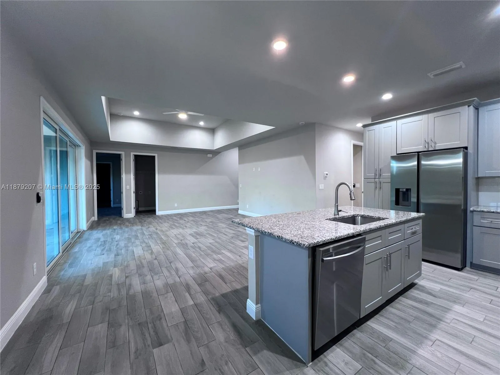 Beautiful Odessa model 4 BEDROOMS, 2 BATHROOMS. This home has a modern design including many features: Double glass door, tray ceilings, impact resistant doors and windows, all tile floors, floor to ceiling tiled master shower, 8′ interior doors, 9′ 4 ceiling height, stainless steel appliances, granite level 2, large size charming island, soft close cabinets, chandelier above dining room, his & her walk in closets in master bathroom, a large size master shower, double sinks in master bathroom, automatic garage door opener, ceiling fans in bedrooms and great room, irrigation system, gutters in front, laundry room with a tub near garage, large size lanai under trusses. A FREE 10 YEAR HOME WARRANTY!! (The fourth bedroom is a large office)