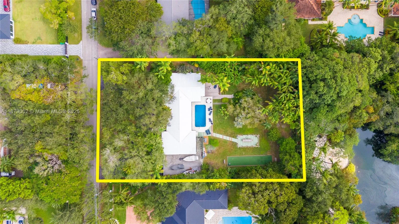 Discover serenity in this enchanting Pinecrest oasis nestled on a lush 36,677 SF lot. This 4BR/3BA residence offers 3,096 SF of refined living, featuring a chef’s kitchen with gas range and convection oven that flows into expansive living, dining, and family spaces. Enjoy a dedicated recreation room, craft den, pantry, and laundry. Outdoors, indulge in a sparkling pool, cold plunge, bocce court, outdoor dining, gardening gazebo, and EV charging station. Surrounded by mature trees, orchids, and lime trees, this private haven blends luxury with nature. Minutes from top shops, dining, and major roads.