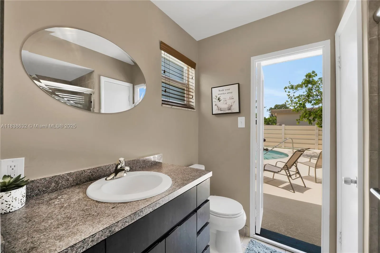 Beautifully upgraded 4-bedroom, 3-bathroom home featuring a spacious pool and exceptional versatility. The permitted garage conversion offers the perfect opportunity for an in-law suite, guest quarters, or even a creative space—previously utilized as a registered Airbnb. Additional highlights include a stand-by generator, a 6-year-old roof, impact windows, accordion shutters on all three patio doors, and a variety of mature fruit trees. A true Florida gem—ideal for comfortable living.