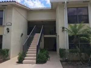 Great first floor unit in the desirable community of Palm Beach Grande! 2 bedroom, 2 bath all tile floor unit with a serene and peaceful lakeview! Neutral throughout! Great unit. The association allows you to rent right away! Come and see it today!