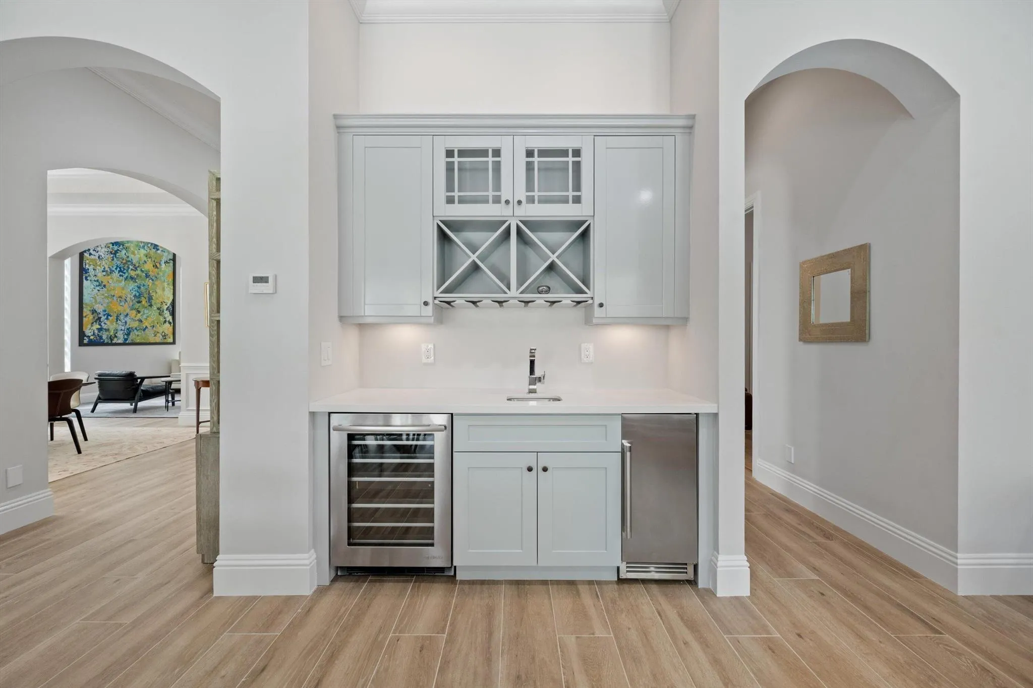 This stunning home is located in the coveted neighborhood of Hunter’s Chase within the Palm Beach Polo Club. Featuring a total of 4,300 square feet under air, this waterfront property offers 6 bedrooms, 4 full and 1 half baths, a 3-car garage, and boasts lake and golf course views! Curated with designer touches throughout the two stories, the interior boasts vaulted ceilings, stunning dark wood floors, an eat-in kitchen with a wet bar plus a formal dining room, family room, and a luxurious master suite with its own private patio. Step outside to enjoy the spacious enclosed patio, featuring a summer kitchen plus a stacking glass door system for instant outdoor living. The perfectly manicured backyard is equipped with a large Travertine tile deck, freeform pool, and expansive fenced yard.