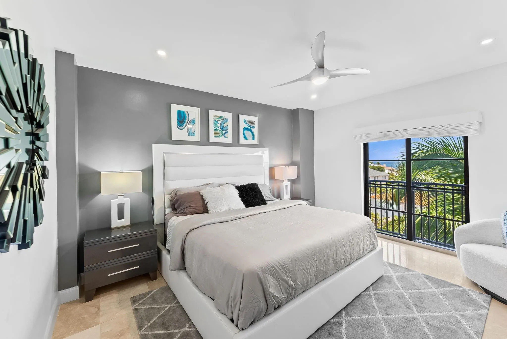 Enjoy Sunrises and Sunsets, with beautiful views of the Ocean and Intracoastal from this spacious Condo located across from the Beach and within close proximity to Restaurants, Shops and more. 3 Bedrooms each have an ensuite Bath. Features: 3 assigned Garage parking spaces are included with this Condo, Impact Windows and Sliding Doors, Rooftop Swimming Pool and Terrace, Fitness Center, gated entry, on-site Management and security. Fountains on Ocean Boulevard is a Boutique style Condo with only 61 Residences. It’s a Pet friendly Building and 2 large Pets are allowed.