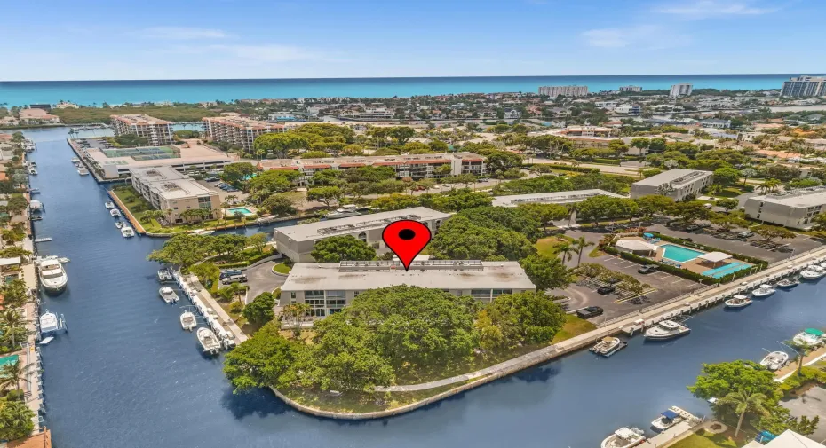This beautiful East of US-1 unit features a water view with access to the Intracoastal and Ocean, no fixed bridges. Rare first floor unit with exclusive walk out area, with boat dockage available once you get on the list. Up to 25-foot boat. Awesome west view of canal, with mature trees canopy in a very desirable neighborhood to call home. 2025 New A/C unit. French Village sits on seven acres and features a serene walking path were you can watch the boats go past or gaze at luxury homes. Equidistant to Ft Lauderdale and Palm Beach airports. Close to Boca Raton and Delray Beach downtown areas, for the best of both worlds. 1 bedroom and 1.5 baths. Tiled living areas, carpeted bedroom. Extra storage, garage parking with convenient elevator access. Just completely renovated pool.