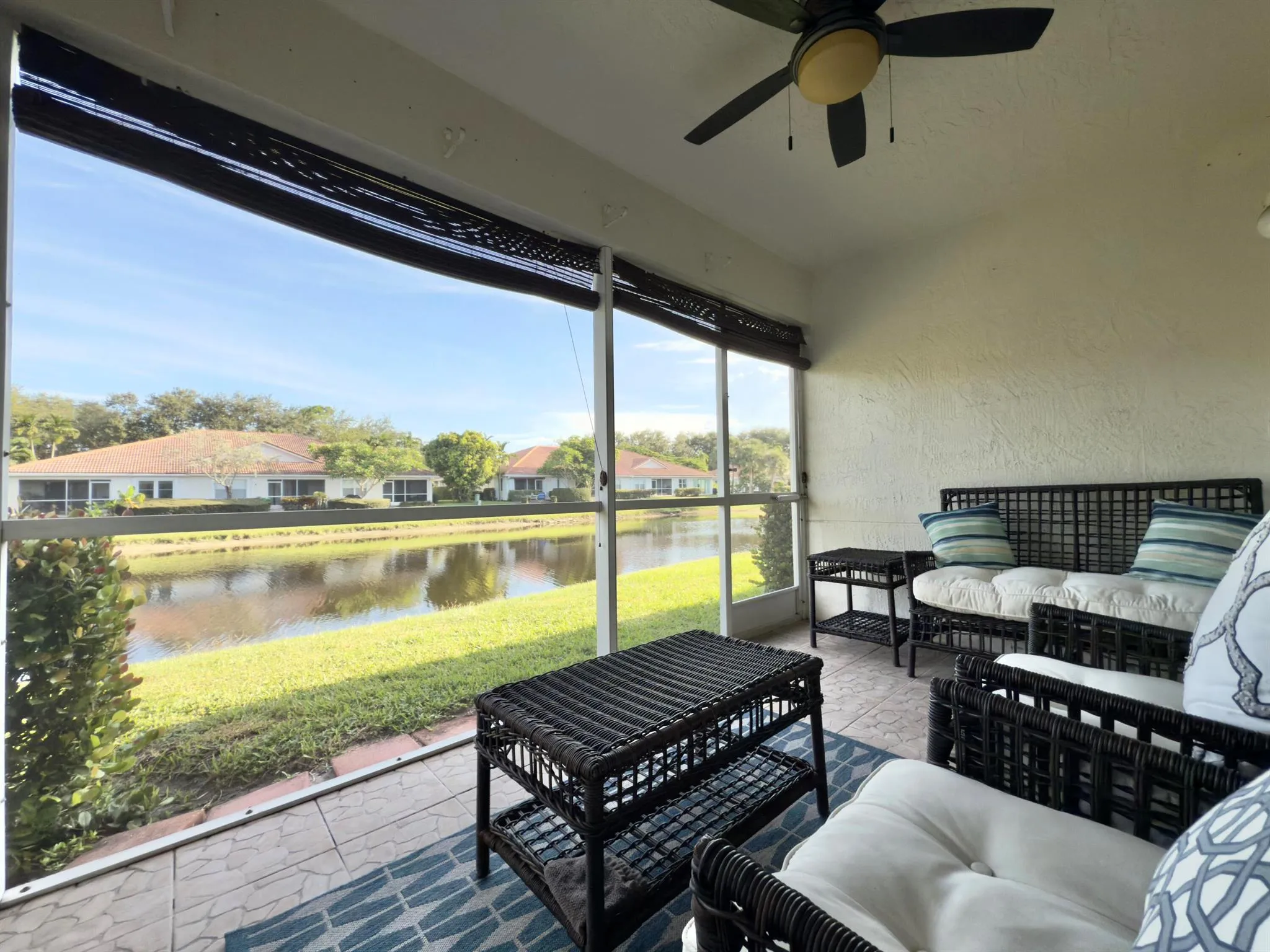 Welcome to this beautiful 2-bedroom, 2-bath villa with a one-car garage, nestled in a serene, pet-friendly, all-ages community. Step inside and be greeted by soaring ceilings that create a spacious and stylish ambiance. The home features an eat-in kitchen, stainless steel appliances, and a bonus space perfect for a dining room, den, or library. The primary suite offers comfort with a full walk-in closet, while the screened-in porch overlooking the lake provides the perfect setting for outdoor living and relaxation. Residents get access to a clubhouse, pool, and tennis court–all just steps from your front door. Low HOA of $360/month covering high-speed internet, Hotwire TV, landscaping, pool, clubhouse, and tennis court, you’ll enjoy worry-free living. Best of all, NO membership required.