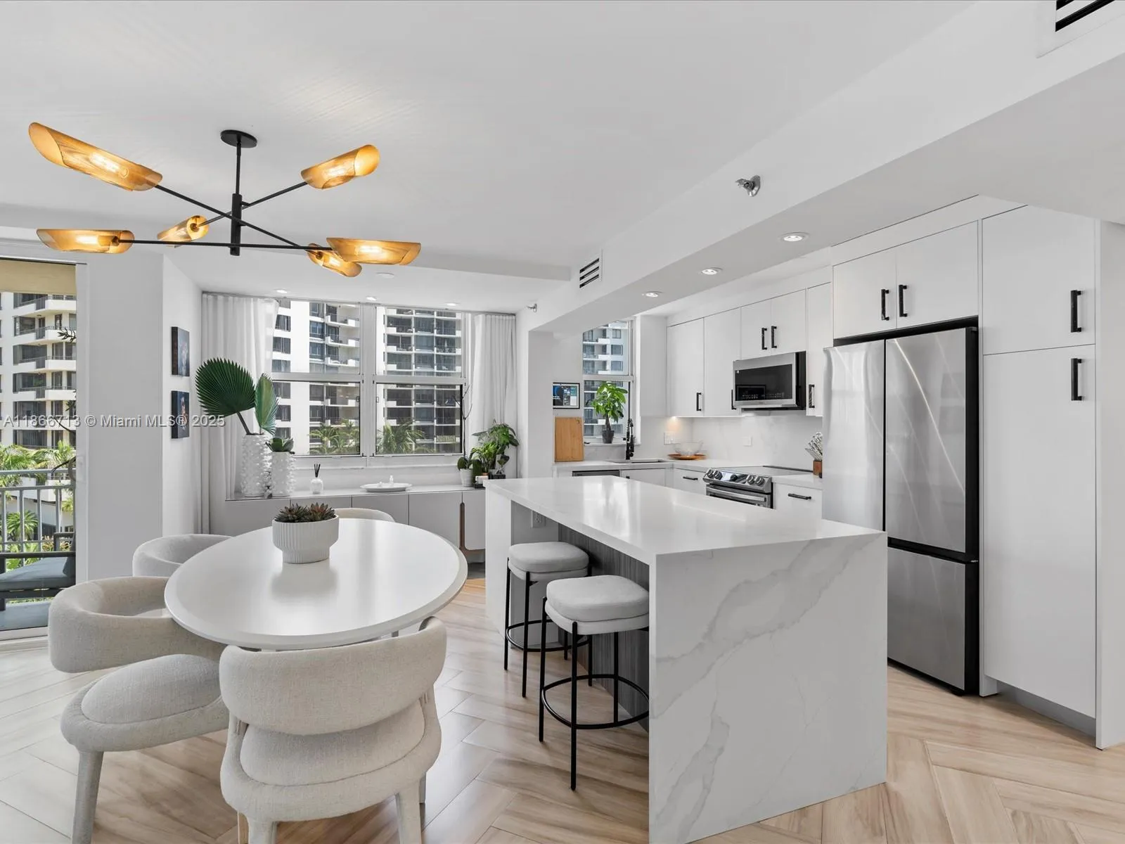 Exquisite 2/2 fully furnished turnkey corner residence with Bay and City views. Fully renovated with new plumbing, electrical, and lighting throughout, this home features custom built-ins, a sleek and functional kitchen w/ a Bar, custom closets, windows sheers and black-out w/ side channels, and new impact sliding balcony door. Smart Door Lock & A/C.rnrnLocated on the prestigious private island of Brickell Key, offering beautiful landscaping, restaurants, café, marketplace, dog park, jogging path, and more. The building has been completely remodeled, with a fantastic new pool, BBQ, and spacious Deck. Enjoy resort-style living with 24-hour concierge, valet, security, tennis courts, heated pool & spa, waterfront new gym, club room, business center & more. Includes two assigned parking spaces